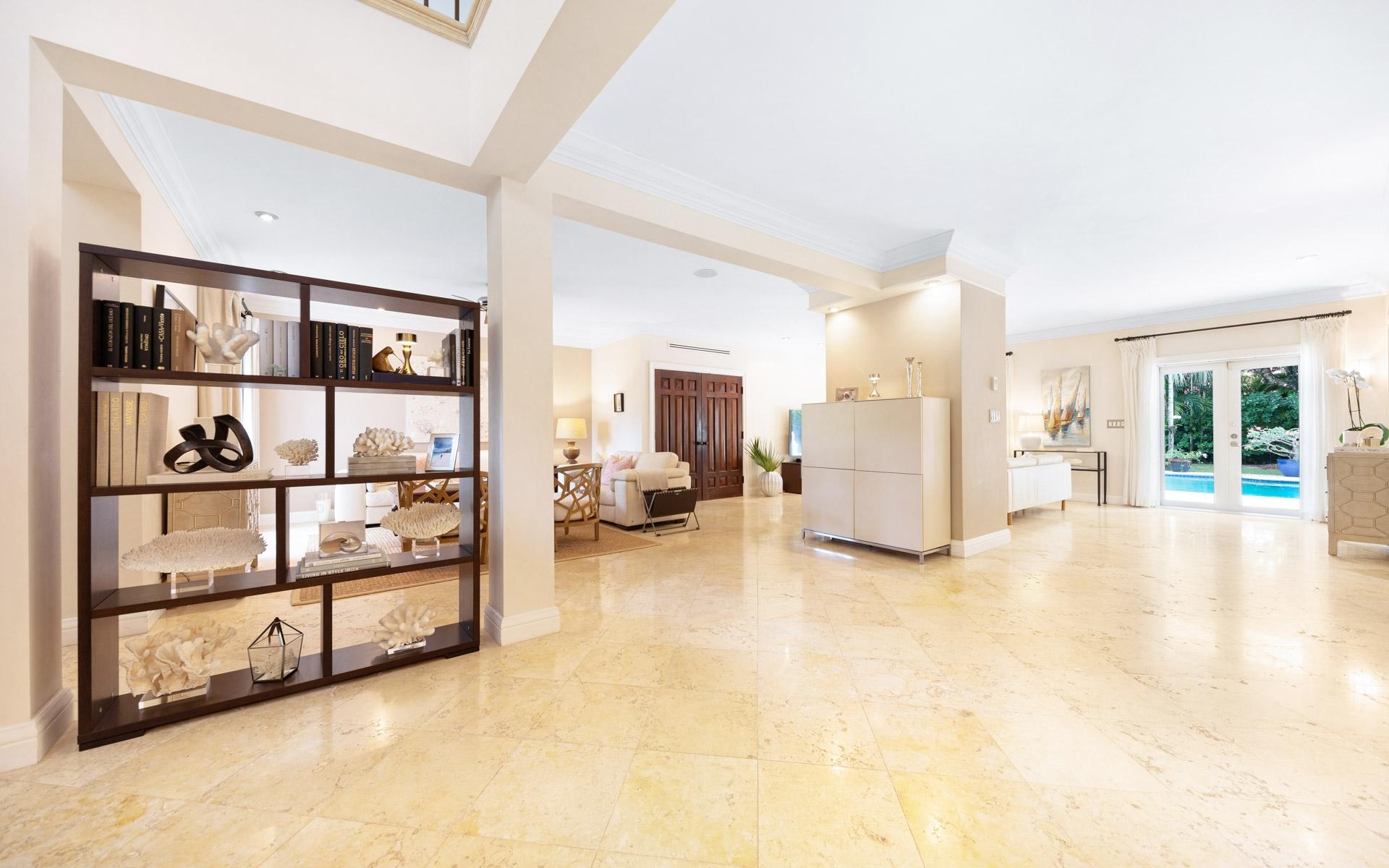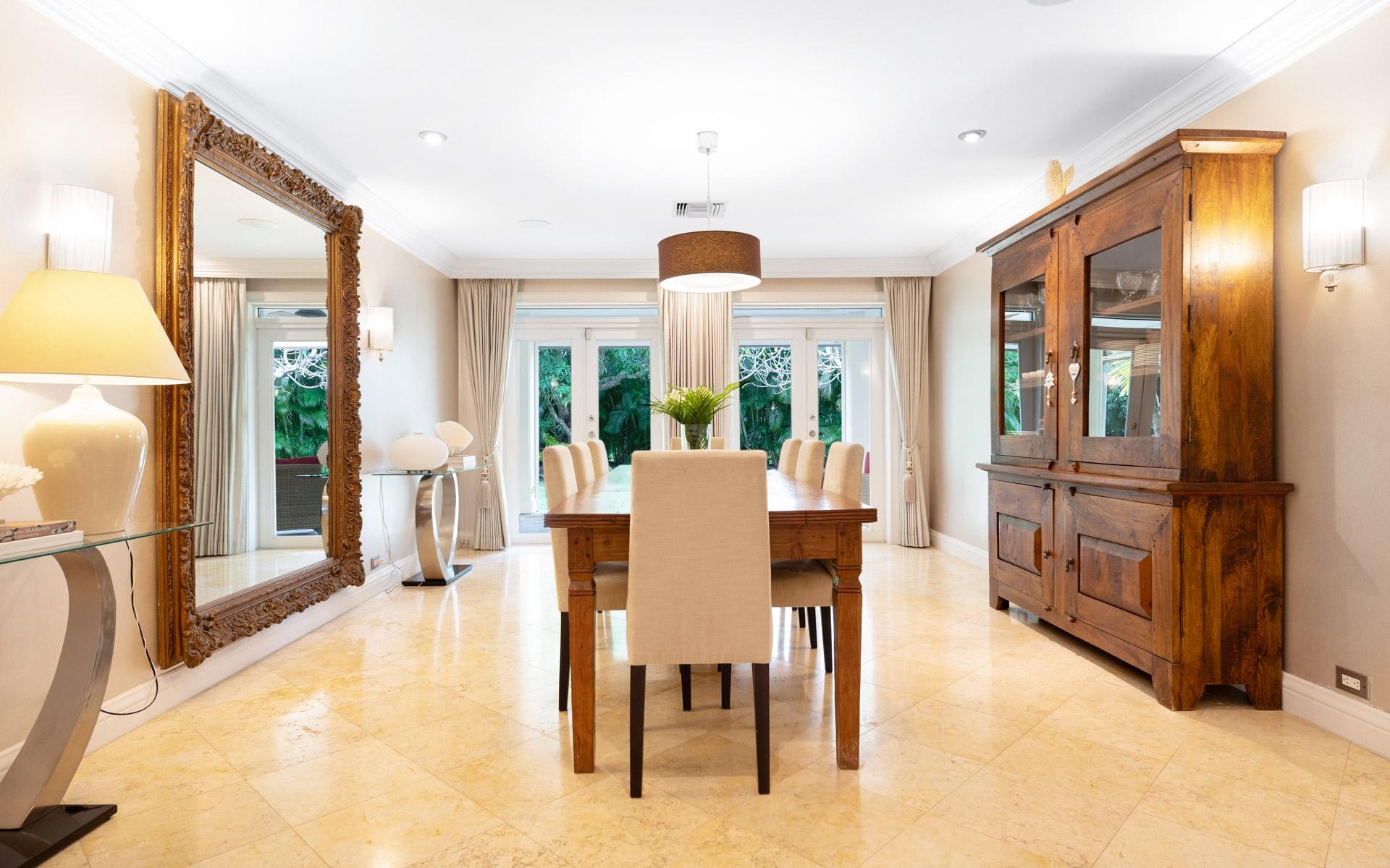 Set amid lush mature trees and vibrant foliage, Chelsea Place is a private sanctuary in the heart of exclusive Lyford Cay. Ideally situated just minutes from the Lyford Cay Club, this impressive two-storey residence combines timeless elegance with modern comfortâperfect as a family estate or refined island retreat. Initially built in the 1990s and fully renovated in 2012, the home underwent a transformative expansion that added a whole second floor with soaring tray ceilings and exquisite cherry wood floors. The property now features nine bedrooms in totalâincluding five ensuite bedrooms upstairs, three bedrooms on the ground floor, and a self-contained guest cottage overlooking the pool. The lower façade is elegantly clad in Corallina stone, lending an air of sophistication. At the same time, the rear of the home evokes classic Caribbean colonial charm with sweeping verandas on both levels, draped in flowering vines that enhance its romantic, old-world appeal. Inside, a majestic entryway with a grand staircase and 20-foot ceilings creates a dramatic first impression.