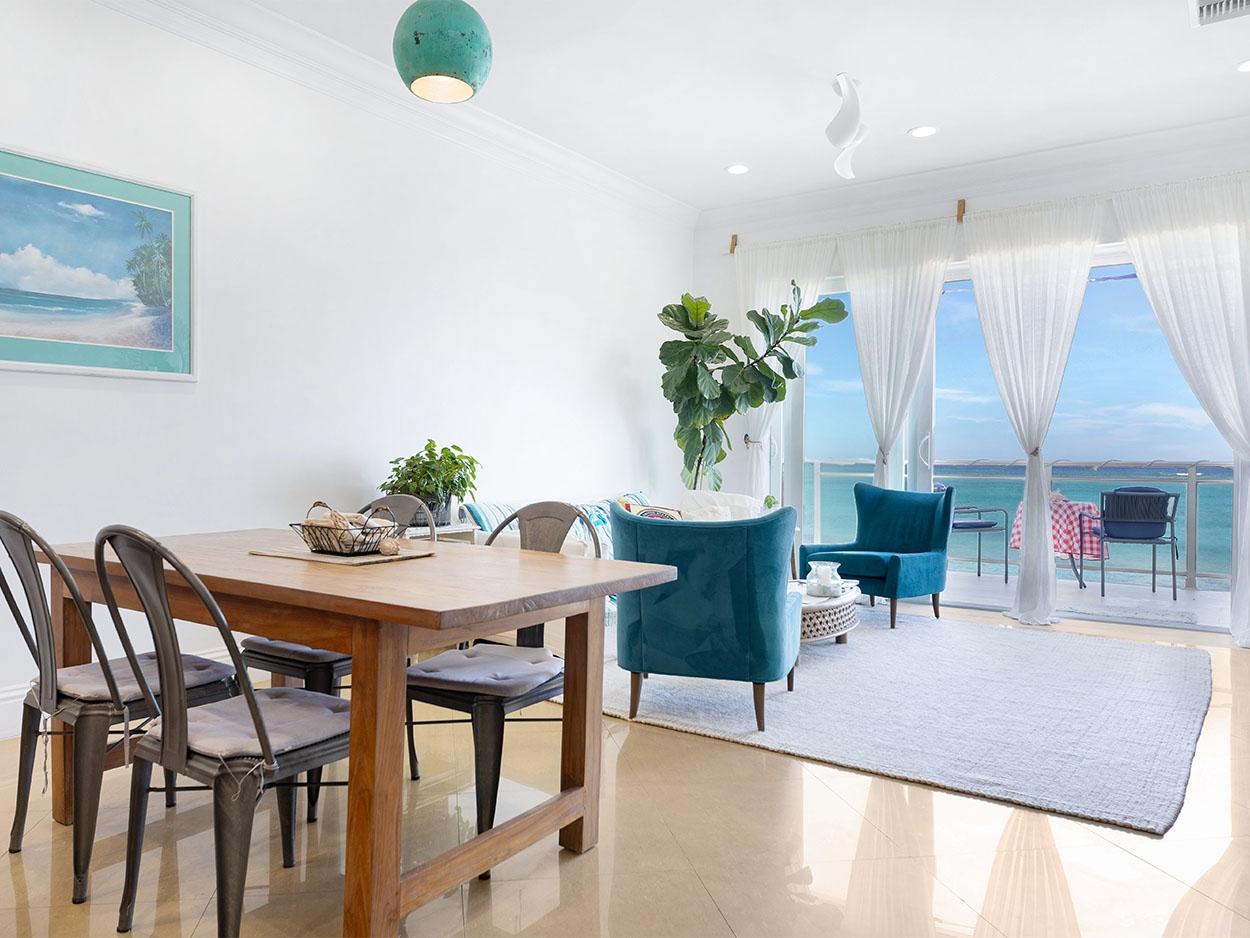 Set along the pristine sands of Love Beach, this exceptionally renovated three-bedroom, beachfront condominium with garage are located in the exclusive, gated community of Columbus Cove. Offering 1,901 sq. ft. of living space, the residence features polished travertine floors in the main living areas, timbered bedroom flooring, 9-foot doors, crown mouldings, recessed lighting and solar system. The custom kitchen is appointed with granite countertops, glass-tile backsplash, and stainless-steel appliances. The primary suite boasts a jacuzzi tub, double vanity, frameless glass shower and smoked-glass wall. Hurricane-impact windows and doors frame unobstructed ocean views and direct beach access. Columbus Cove offers resort-style amenities including multiple swimming pools, a fitness center, landscaped gardens, 24-hour security, and on-site managementâall minutes from dining, shopping, and Nassau International Airport. An ideal full-time residence or luxury beachfront investment opportunity as the garage can also be converted into a one-bedroom apartment. Price is in USD.