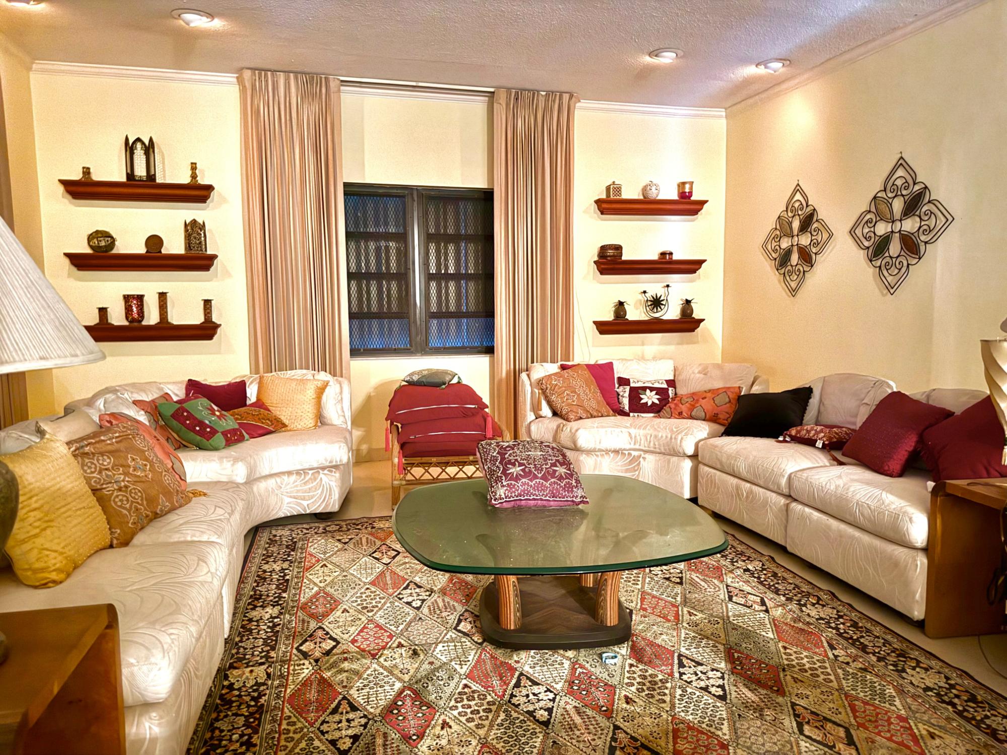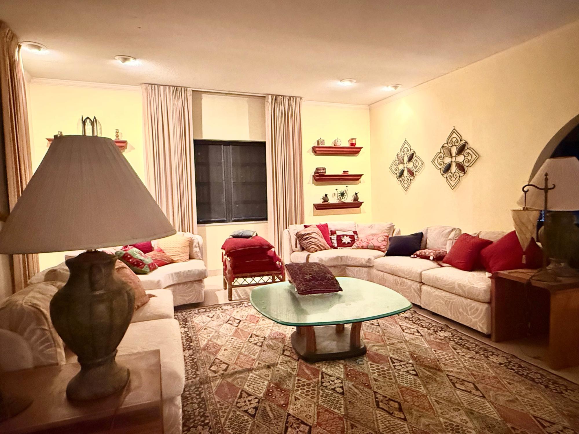 Canal-front home in Bahama Terrace offering approximately 5,100 sq. ft. with 100 feet of canal frontage and 3 minutes to the open ocean by boat. Built in the 1990s with solid construction in a well developed waterfront neighborhood, this 4-bedroom, 3-bathroom home features a covered entrance courtyard, hurricane shutters, clay tiled roof, and a fully fenced lot with front entrance wall. The layout includes a central foyer, expansive living and dining areas, a large kitchen with breakfast nook overlooking the water, and a private bedroom wing with the primary suite at the end with its ensuite bathroom. The 3 guest bedrooms share 2 guest bathrooms that are in the hallway. Additional features include a garage with lots of storage and a laundry area. Exterior and landscaping need some TLC, offering excellent potential to enhance a well-built canal-front home in an established neighborhood.