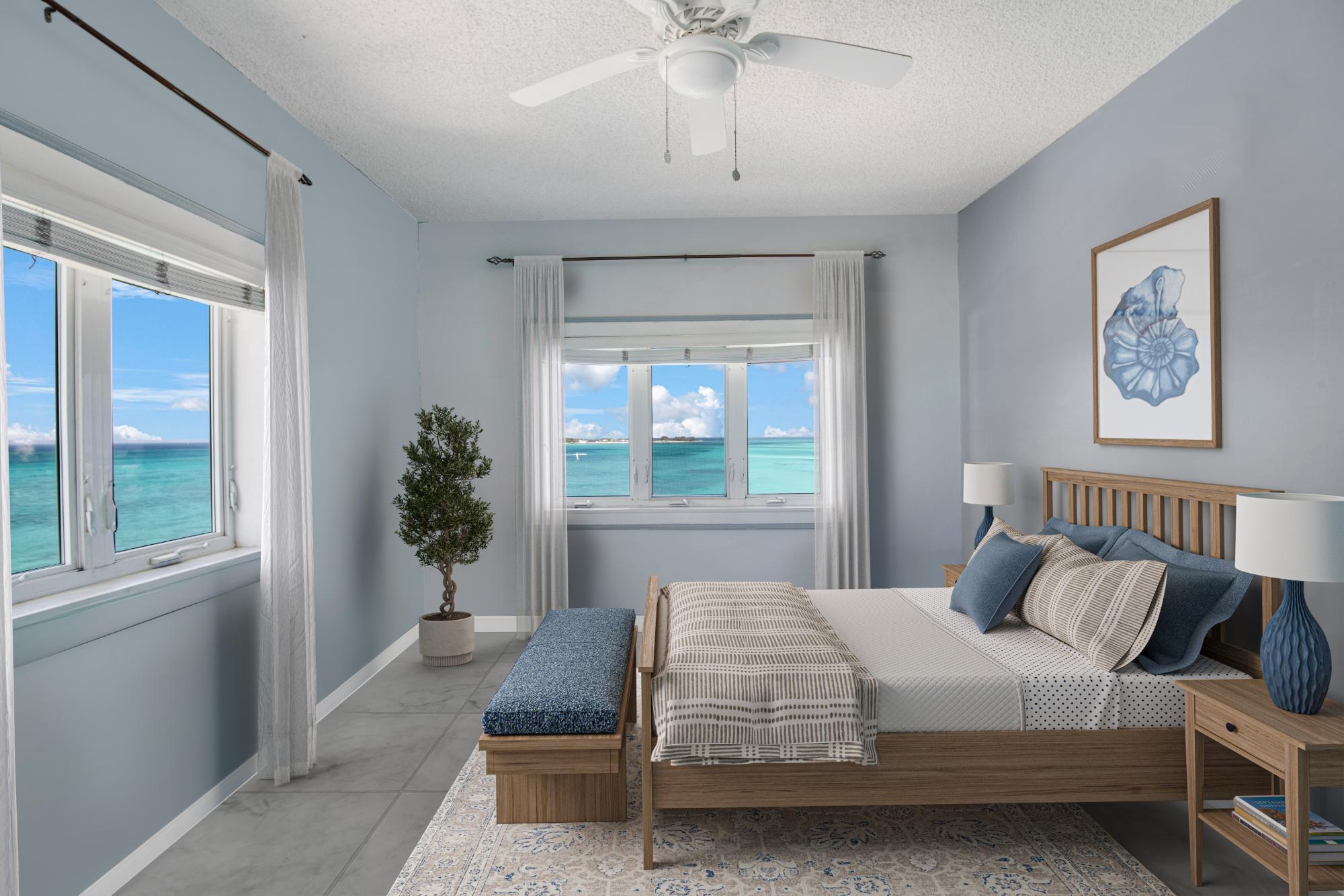 Enjoy breathtaking ocean views from every room in this spacious 3-bedroom, 3.5-bathroom condo in Rawson Court. This older but well-maintained unit offers expansive living spaces, a private balcony overlooking the sea, and endless potential for customization. Residents enjoy beachfront access, a swimming pool, and gated security, all in a convenient location just minutes from downtown Nassau, shopping, and dining. Please note: Some images shown are renderings intended to illustrate potential design possibilities