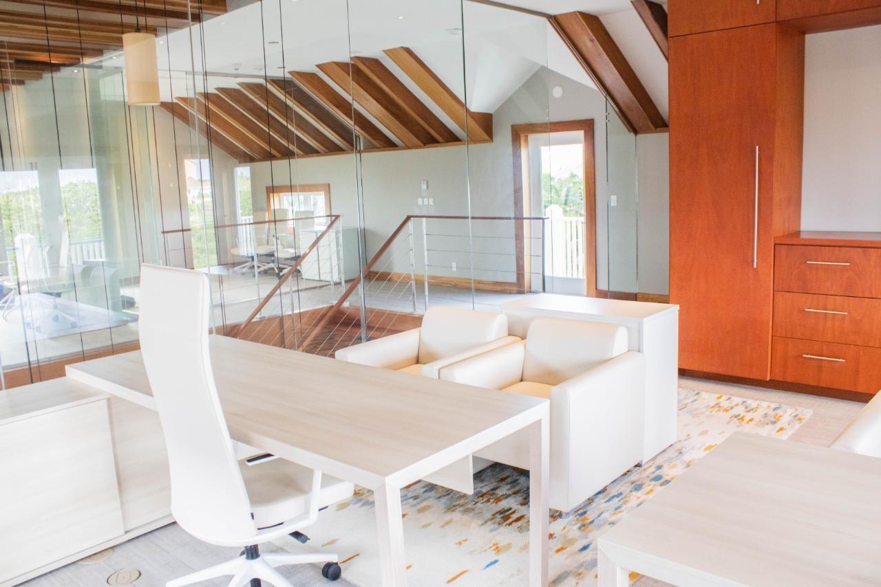 Centrally located in Balmoral, one of Nassau's premier gated communities, this modern office comprises 3300 square feet of interior space, plus balconies. It can accommodate approximately 18-20 people and includes 10 parking spaces, with more available if necessary. This deluxe office features a spacious reception area, a kitchen, 3 bathrooms, an executive board room, and 7 private offices (two of which are larger offices that can accommodate up to 6 people).The office's high ceilings and large windows create a lot of natural lighting and emphasize its beautiful architectural designs and refined millwork. It is nicely elevated, which offers breathtaking views of the ocean and Baha Mar from the upper floors. Equipped with a generator.