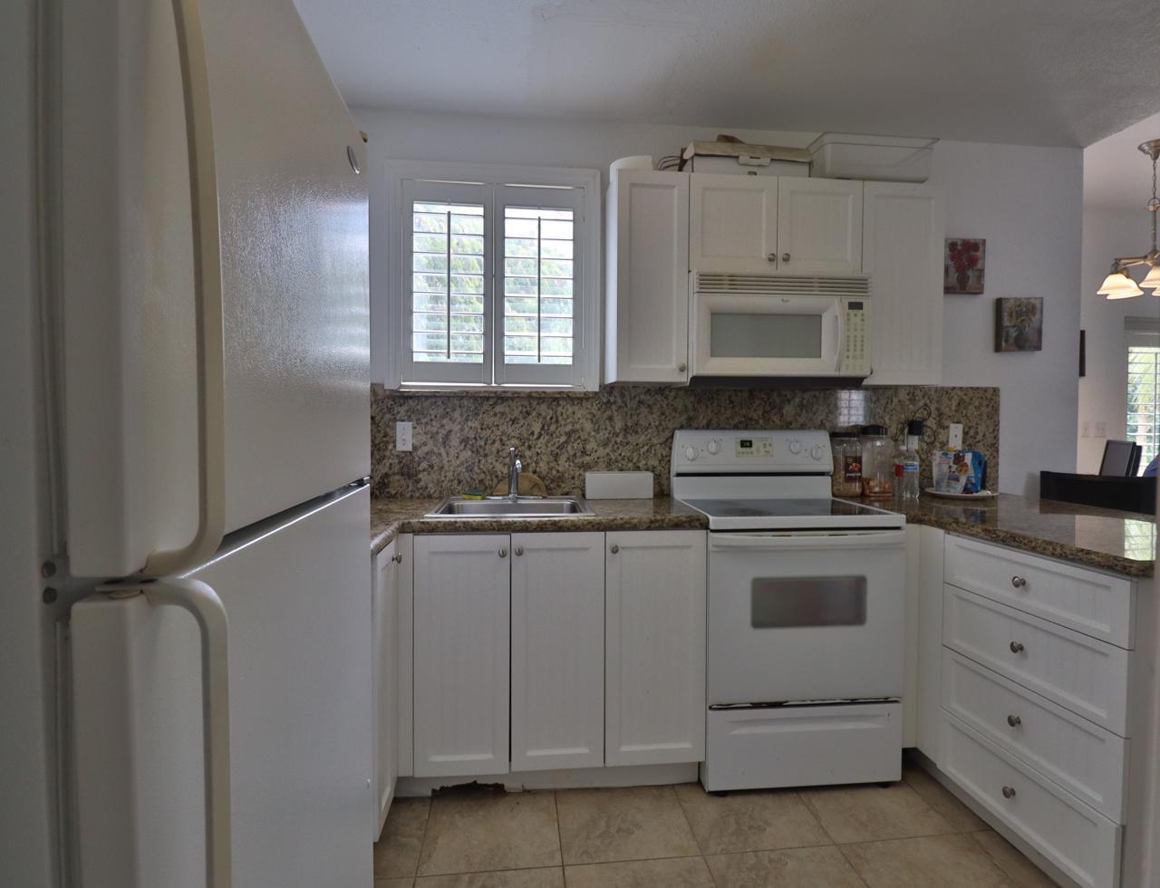 This lovely villa, named Bimini's Angel, showcases a beautifully designed great room with comfortable furnishings. Adjacent to it is a separate dining area, complete with a table and four chairs, perfect for hosting intimate gatherings. You'll also have the option to relax on the front terrace if you so desire. The villa boasts of a new central air system, a fully equipped kitchen, featuring a porcelain-top stove, granite countertops, cutlery, tableware, refrigerator, and microwave - everything you need for culinary adventures! The bedroom within this treehouse-style villa is a cozy retreat, complete with a full bathroom and a luxurious King Size bed adorned with high-quality linens. Throughout the home, you'll find plantation shutters, adding a touch of elegance. The unit can be converted into a two-bedroom space with approval from the HOA board. At closing, the condo will be fully painted on the inside, and is sold as is, fully furnished. In addition to its delightful features, this unit offers a separate storage shed for your convenience.