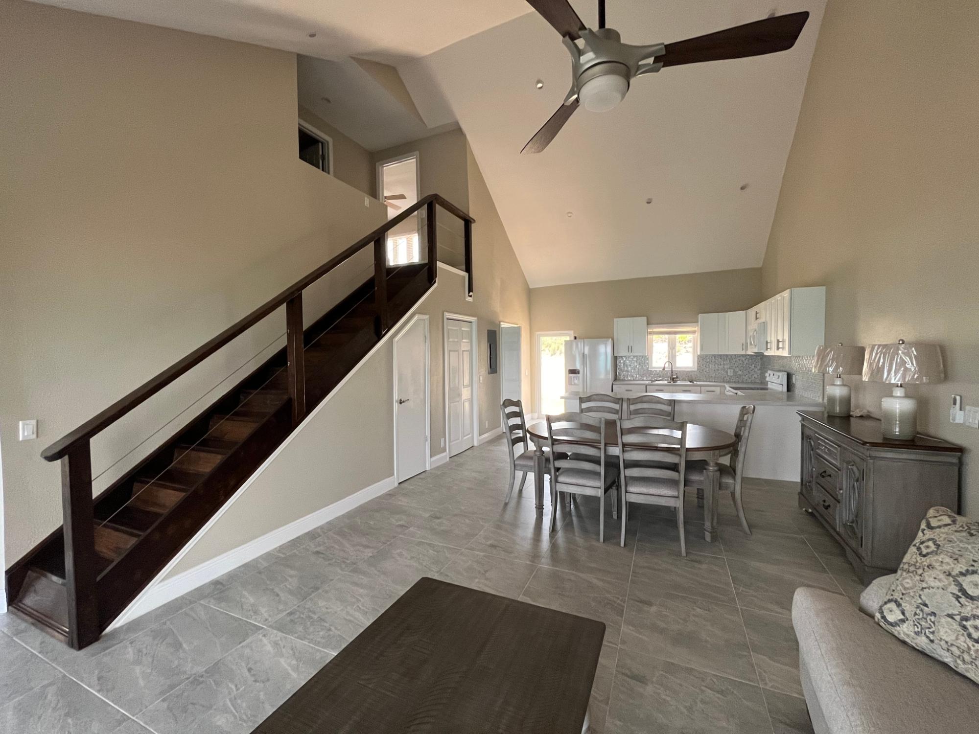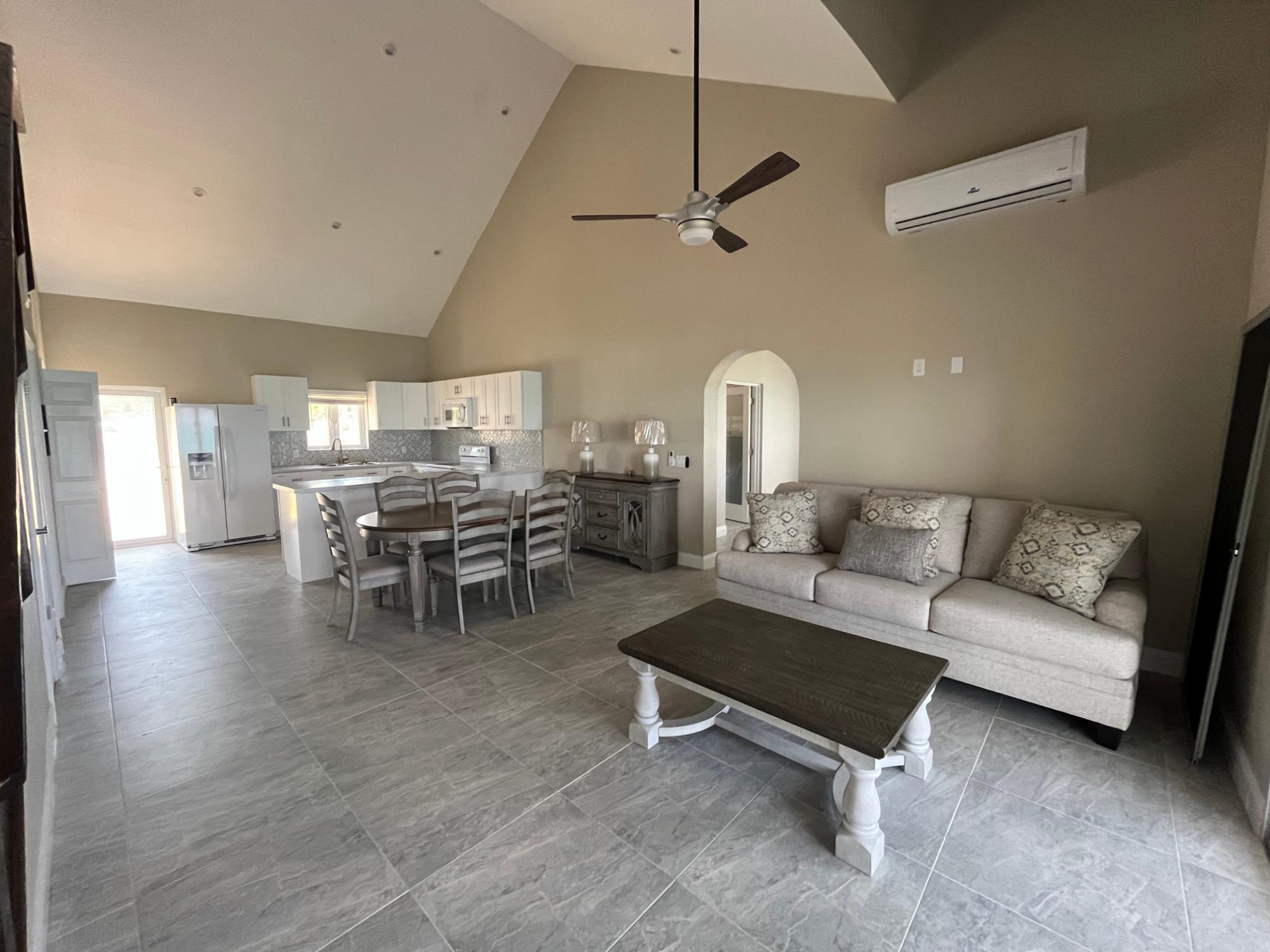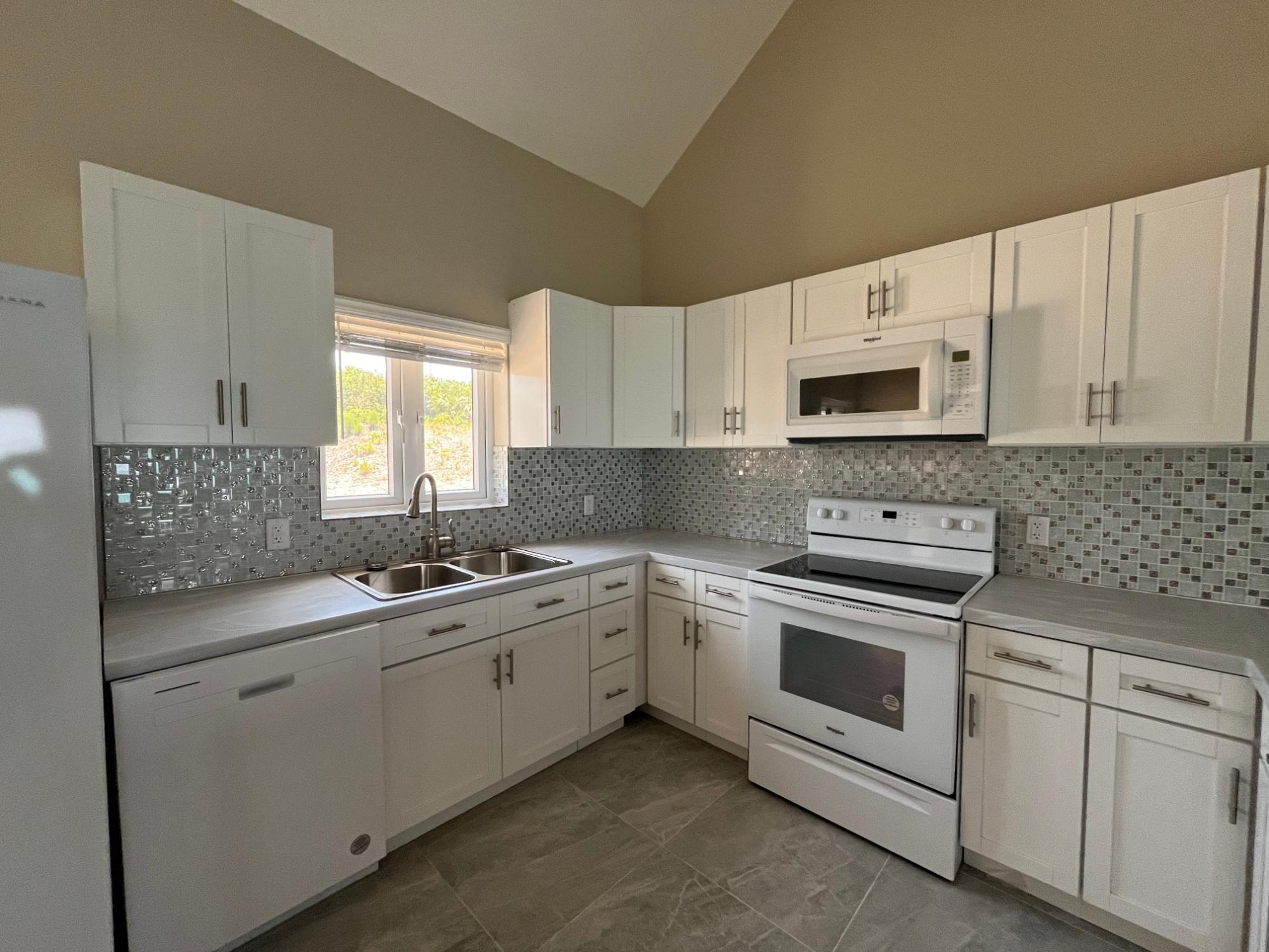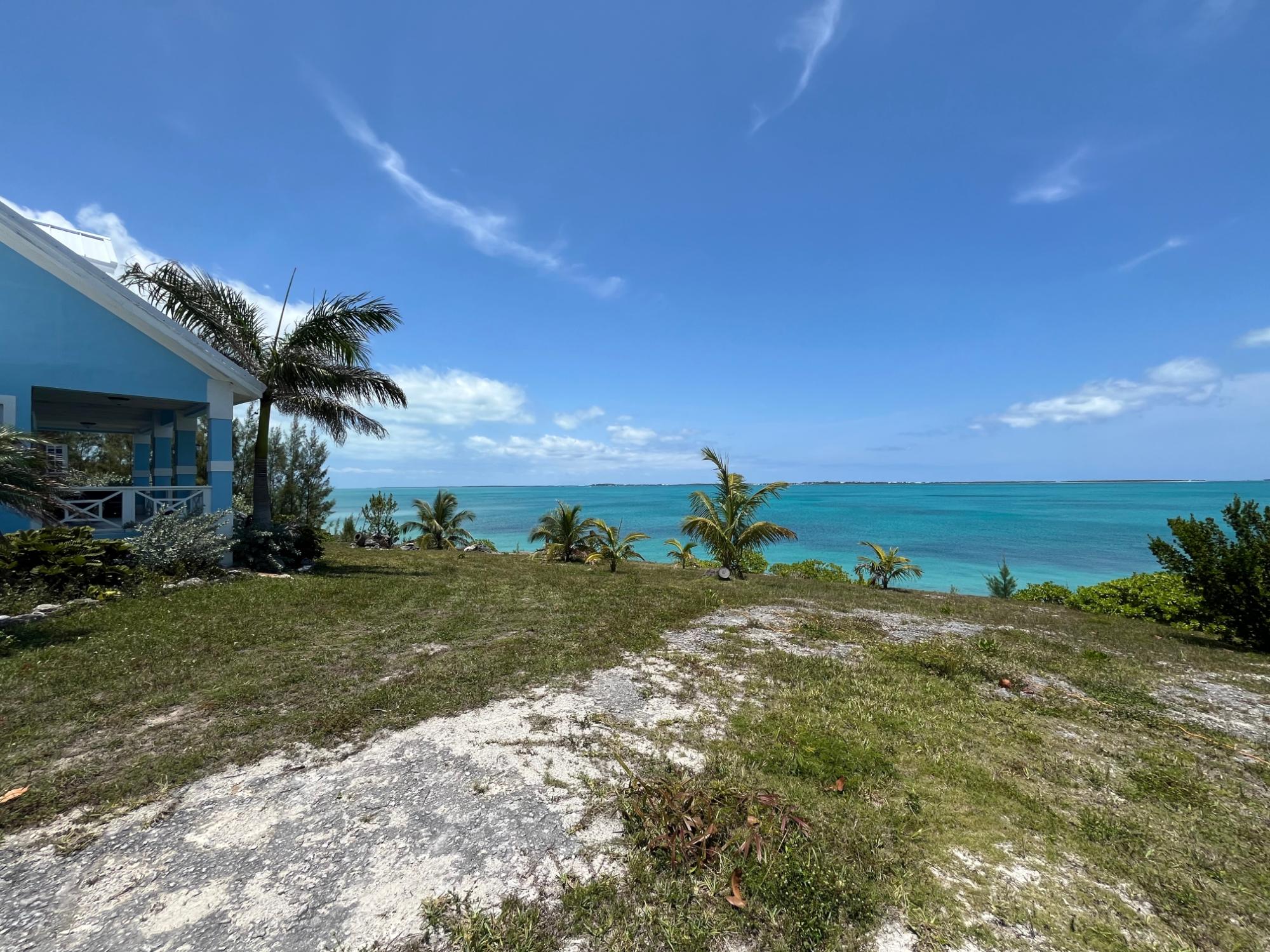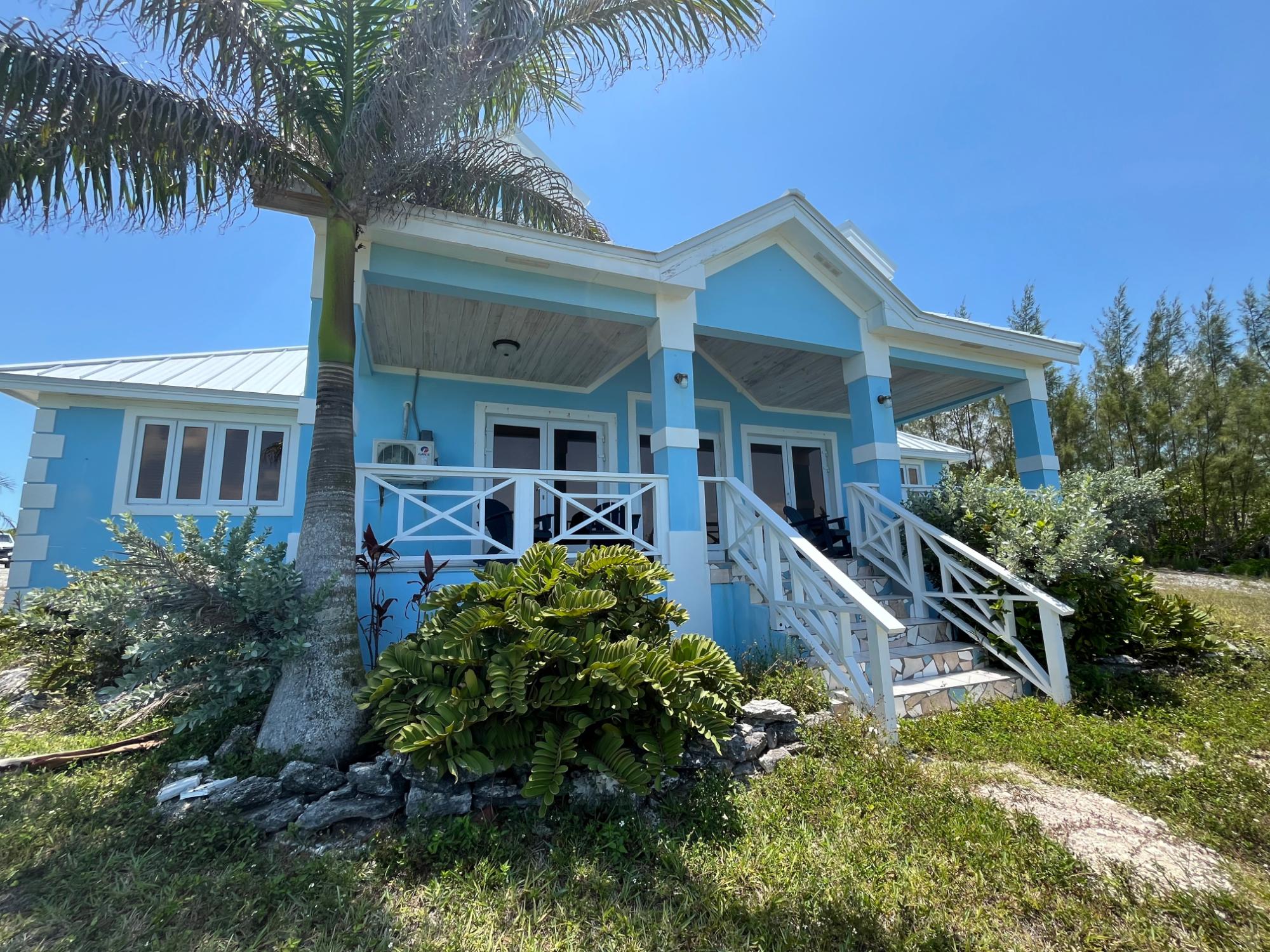 Between Treasure Cay and Treasure Cay airport, near the Green Turtle Cay ferry dock, sits a majestic blue house mirroring the mesmerising blues of the Sea of Abaco. The house sits on an acre of land overlooking 230 feet of rocky shoreline. A large home with two bedrooms & one bathroom upstairs and two bedrooms and one bathroom downstairs the home also boasts bonus spaces - one sitting or reading room outside bedroom two and a home office/den adjacent to the master bedroom. Also blessed with plentiful closets and storage spaces. Neutral driftwood tones grace the floors and countertops and the furnishings are brand new! There is an adjacent half acre lot behind the house so there is plenty of space to create an orchard, pool and/or guest cottage or even another house. The house is on city water and BPL power. Split a/cs throughout! Potential for a dock and well water.