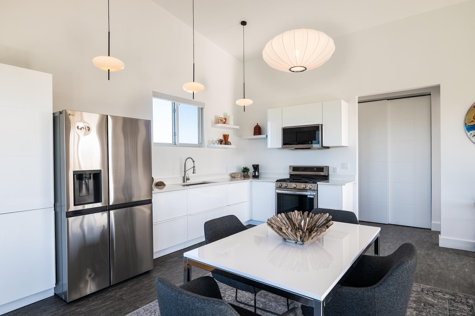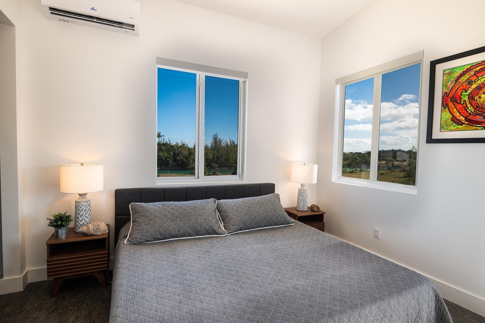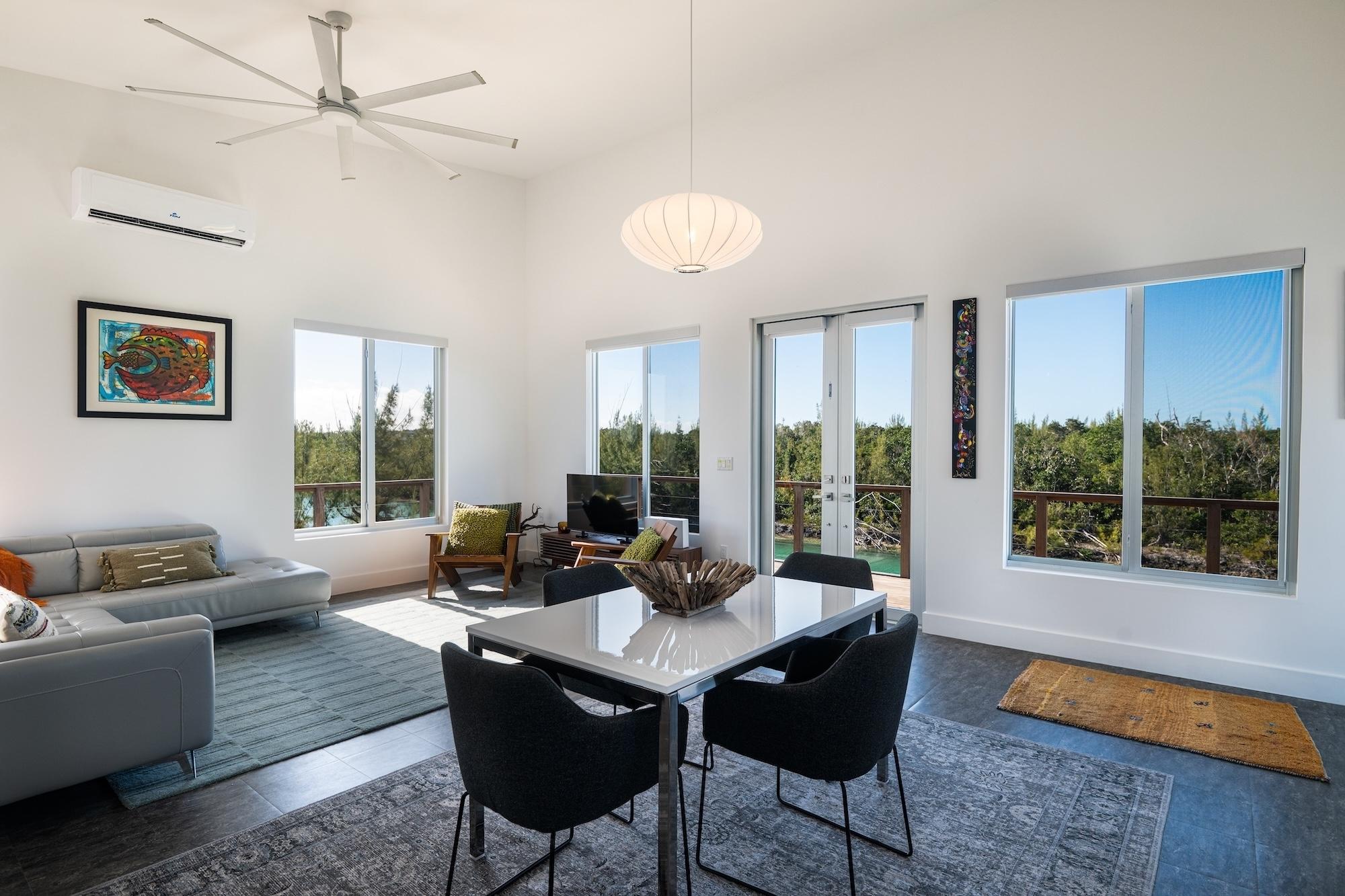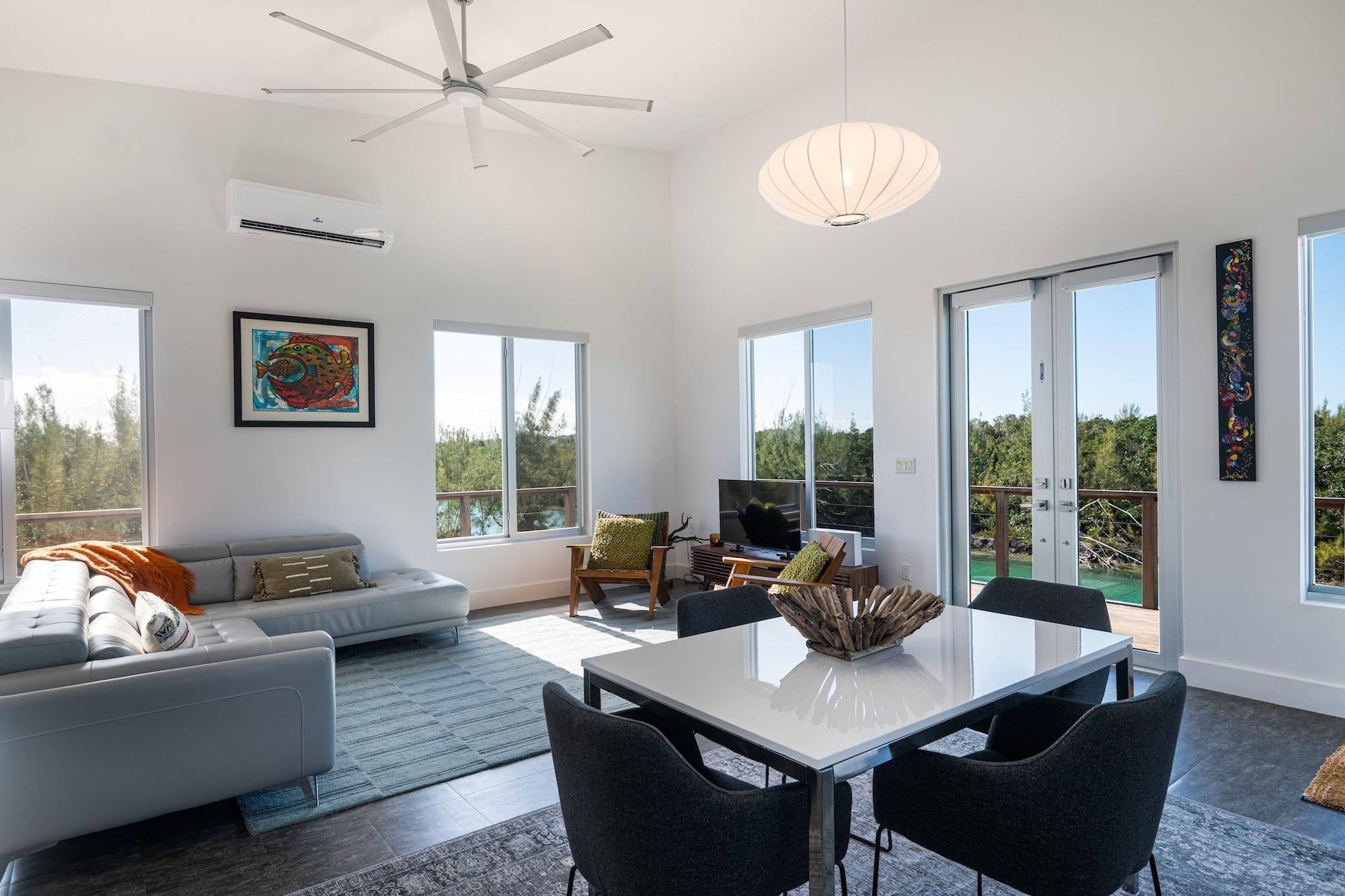 This brand new 1,000 sq ft waterfront residence in Leisure Lee, Abaco blends modern coastal contemporary design with durable island construction. Elevated on cement piers and finished with Hardi board siding, impact glass windows, custom doors, and a platinum metal roof, the home offers both style and resilience. Inside, light-filled living spaces feature LVT flooring, statement lighting, and tasteful coastal décor. The glossy white kitchen is appointed with quartz countertops, stainless steel appliances, and floating shelves, creating a sleek and functional entertaining space. The beautifully tiled bathroom showcase refined finishes. Expansive IPE decking overlooks a peaceful canal where turtles glide through the clear waters. The seawall accommodates vessels up to 65 feet, with canal depths exceeding 6 feet at low tide, providing protected dockage and quick access to the Sea of Abaco. Offered fully furnished, with access to Leisure Leeâs pristine sandy beaches just a short walk away.