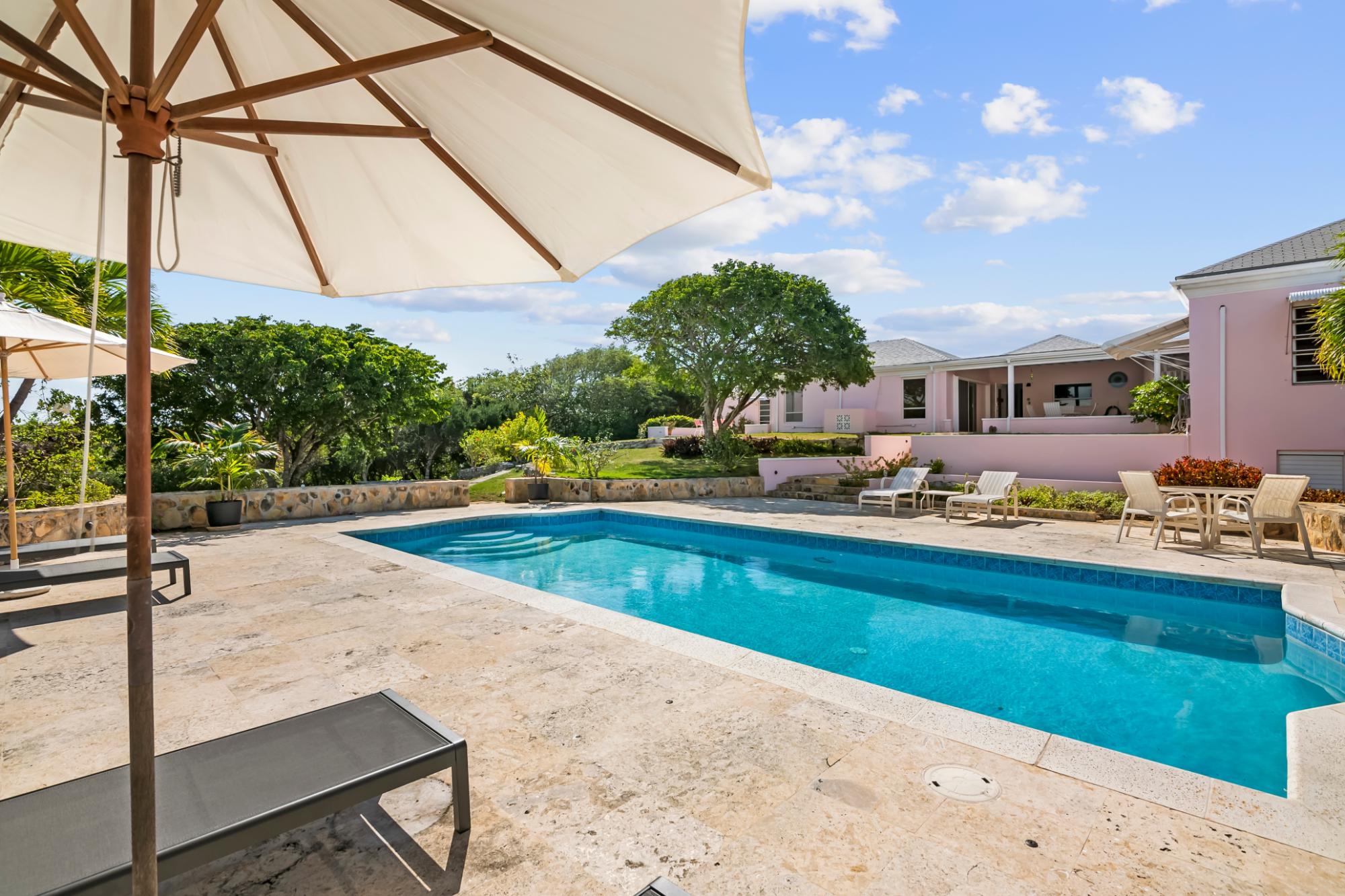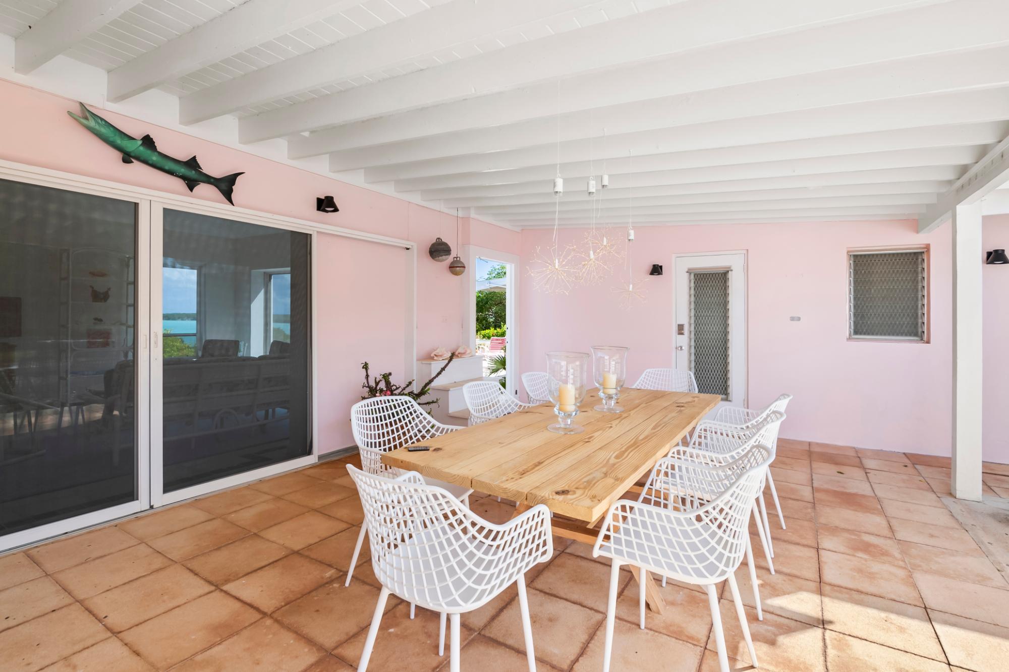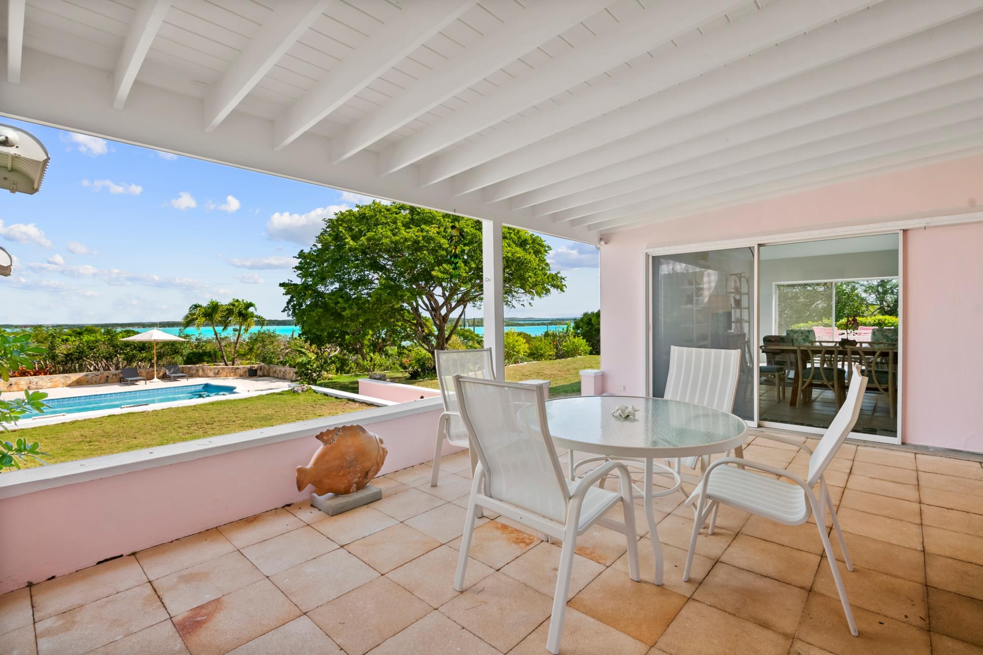 Perched atop a hill on Caravelle Road in George Town, Exuma, The Pink House sits on 1.52 acres of mostly flat land with lush gardens and fruit trees. Enjoy sunrise-to-sunset panoramic views over turquoise waters, including Elizabeth Harbor, Crab Cay, and February Point. Ideal as a primary residence, vacation retreat, or investment, the estate offers rare privacy with convenience. The 3-bedroom, 3 full and 2 half bath home features an open living and dining area designed to capture cooling island breezes and flow seamlessly outdoors. Exterior amenities include three patios, an ocean-view pool, expansive deck, and outdoor showerâperfect for entertaining or relaxing. The kitchen features stainless steel appliances and generous workspace. Minutes from George Town, the property provides easy access to dining and shopping while remaining secluded. The ownerâs boat is included, offering effortless access to Exumaâs waters and nearby cays. Five contiguous lots allow for expansion or future development. Schedule your private tour today.