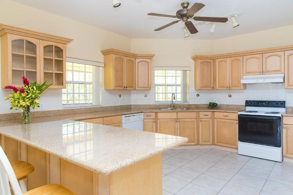 Perfect for the large family or Business Executive, this gorgeous 4-bedroom, 2-story concrete house with a red-tiled roof is situated among a yard of mango, date, and coconut trees on two lots off a secluded cul-de-sac on the Ruby Golf course in North Bahamia, Grand Bahama Island, Bahamas. The house boasts a large kitchen with an open layout that flows into the family room, high ceilings in the first-floor rooms, and bedrooms. The home also features a large and immaculate two-car Garage with brand-new installed garage motors and Bluetooth remote controls. There is a Storage shed in the rear of the property, which has remained dry during past hurricanes, as the house sits on land 20 feet or more above sea level. There are so many possibilities; you have to see this one to appreciate it. Contact us today to schedule a viewing!