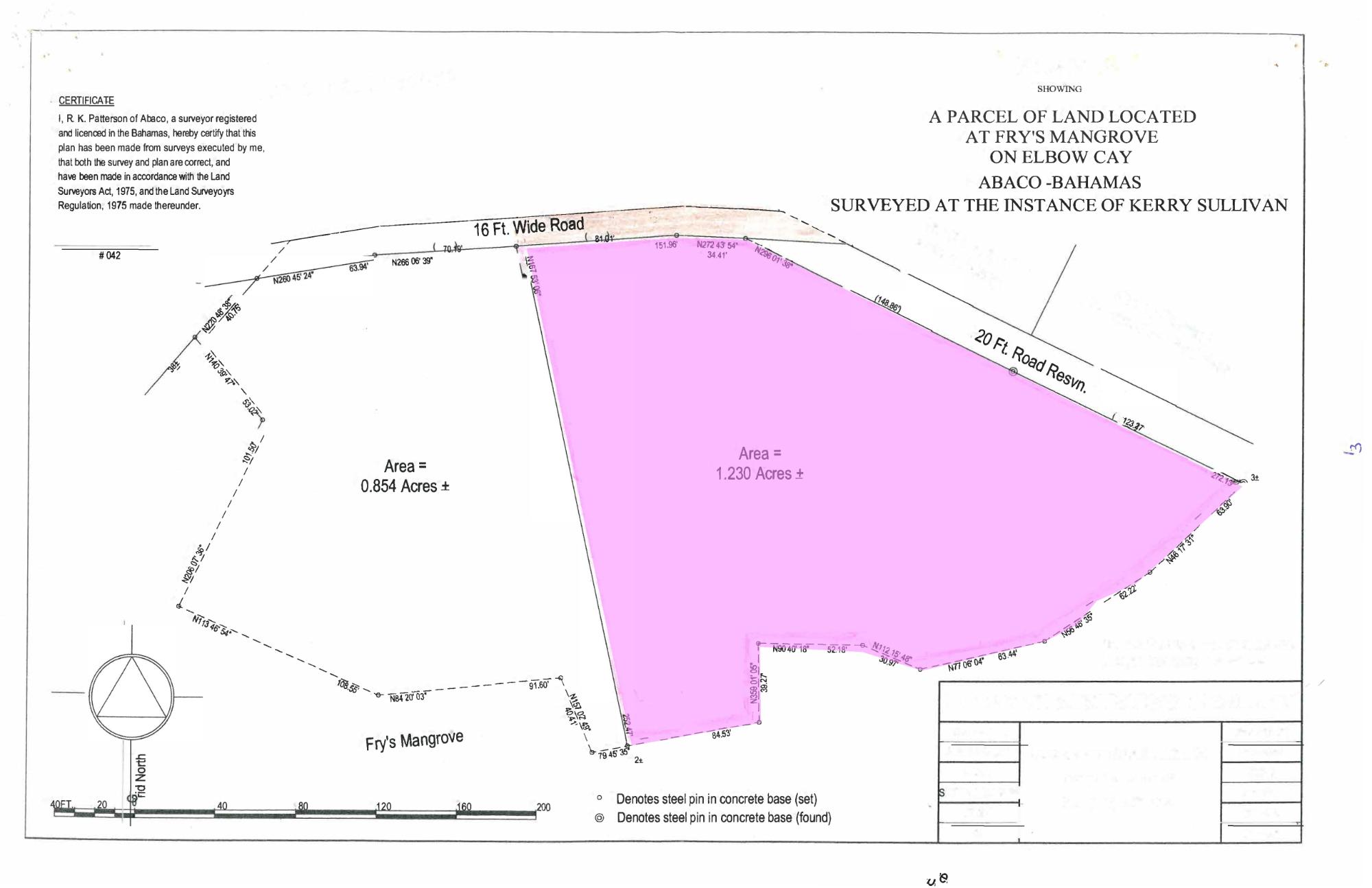 - Legal Description: ALL THAT piece parcel or tract of land situate at Fry's Mangrove and comprising 1.287 Acres more or less situate on Elbow or Little Guana Cay, Abaco, Bahamas
