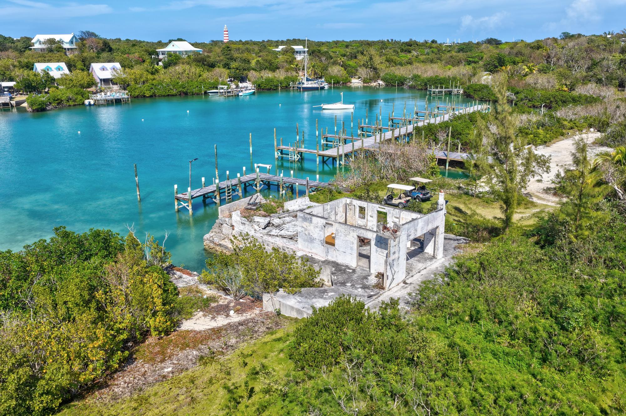 Quit the world and move to Fryâs Dive! Formerly home to Mikeâs Dive Shop, this natural beauty offers a 50' L-shaped dock, protected hurricane hole, and a 12,000-gallon rainwater tank beneath a solid foundation. Spanning 1.287 acres with 300 feet of frontage, located in Fryâs Mangrove, on the highly desirable island of Elbow Cay, Abaco. The property includes deeded access through Elbow Cay Club and offers excellent potential for a private estate or boutique development. A transferable mooring license adds further value. Existing design concepts envision multiple cottages, a shared pool, and additional dockageâideal for boating enthusiasts seeking direct water access. With strong vacation rental demand in the area, this property presents outstanding income potential. Enjoy sweeping views of the Hope Town Lighthouse and Parrot Cays, all just a 10-minute golf cart ride from the historic & vibrant village of Hope Town.