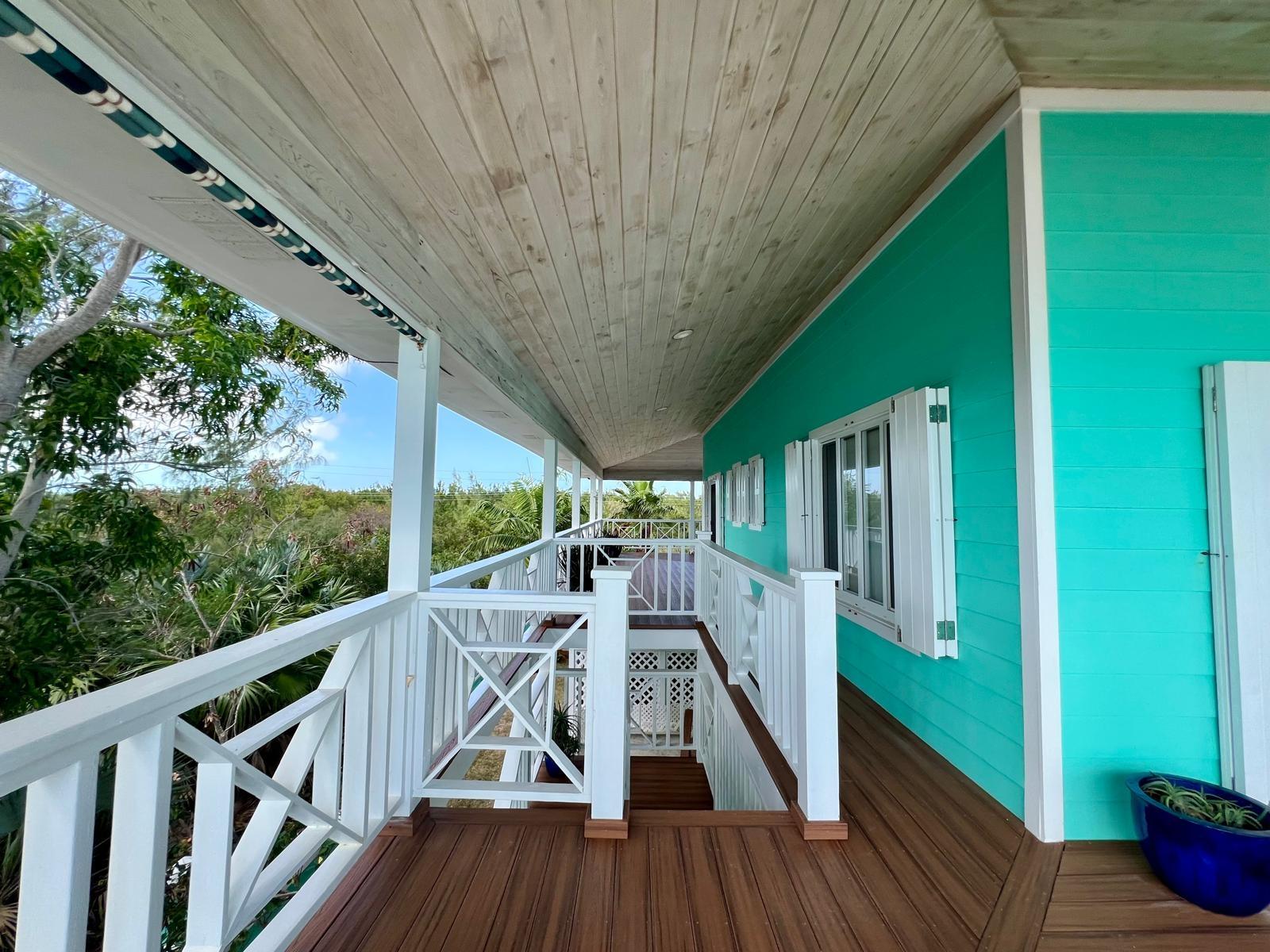 Situated on the south side of Amberjack Road, this exceptional waterfront property presents a rare opportunity to own a private coastal estate in beautiful Exuma. The property comprises approximately 100.04 linear feet of sandy and rocky shoreline. Its elevated height, approximately 10 feet above sea level, allows for refreshing sea breezes and stunning ocean views. Water is supplied by a freshwater well and reverse osmosis system. The residence is a two-story, 3-bedroom, 2.5-bath home comprising approximately 3,648 sq. ft. of interior living space, along with an additional 592 sq. ft. of covered verandahs, thoughtfully designed to take full advantage of the surrounding waterfront views and island breezes. All bedrooms have direct access to the verandah, allowing residents to enjoy the ocean views and cooling breezes right from their rooms. The home also features a half bath located in the laundry room, as well as an additional outdoor shower that is accessed from outside the home. The grounds are beautifully landscaped with a variety of mature palms and tropical hedges.