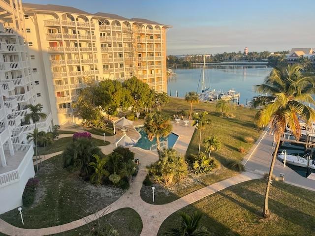 Enjoy waterfront luxury at Harbour House Towers, ideally located in Bell Channel overlooking Port Lucaya Marketplace. Just minutes from restaurants, shops, nightlife, downtown amenities, and the Grand Bahama International Airport, this sixth-floor residence offers both convenience and stunning ocean and canal views. Offered turnkey, the fully renovated condo features a stylish kitchen with wood cabinetry and granite countertops, along with elegant finishes throughout. Highlights include oversized mirrors, built-in curio cabinetry, and a versatile bar/desk area. The spacious living room opens onto an oversized balconyâperfect for enjoying the island breeze and panoramic scenery. Furnished with Paolo Leruggio designer pieces, the unit also includes a built-in fireplace and a custom master bathroom with a frosted glass door. Residents enjoy a gated entrance, 24/7 security, on-site staff, a newly refurbished pool, and dockage. With strong rental demand, this property is ideal as a luxury residence or income-producing investment.
