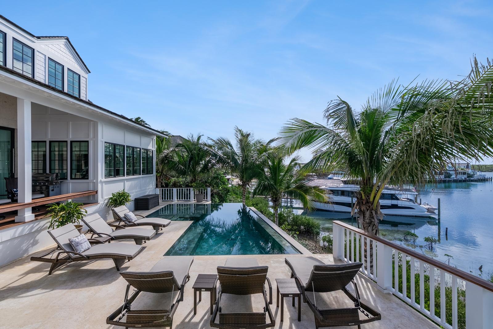 Luxury Waterfront Estate with 110 Foot Private Dock - Refinement defines this brand new 4200 sq.ft. island home on Elbow Cay, Abaco, Bahamas. Designed by St. Augustine's renowned Cronk Duch, masters of Caribbean architecture with interiors curated by designer, Andrew Howard. Rarely does a property showcase dual vistas - sweeping panoramas of the Atlantic Ocean, as well as the serene Sea of Abaco. Easy access to a fantastic sandy surf beach directly across the street. The 3 bedroom and 4.5 bath residence boasts a Wolf kitchen and private ground-floor junior ensuite with morning kitchen for ultimate privacy. A state-of-the-art suspended zero-edge swimming pool overlooks the Sea of Abaco, and the private dock which will accommodate an 80-ft vessel. Additional highlights include an elevator, 16,000 gallon cistern, cedar shingle roof, and 2-car garage. Within walking distance to Abaco Inn and Sea Spray Marina, and only minutes to the historic village of Hope Town. Built by local experts, Abaco Construction, and professionally landscaped. Must be seen.