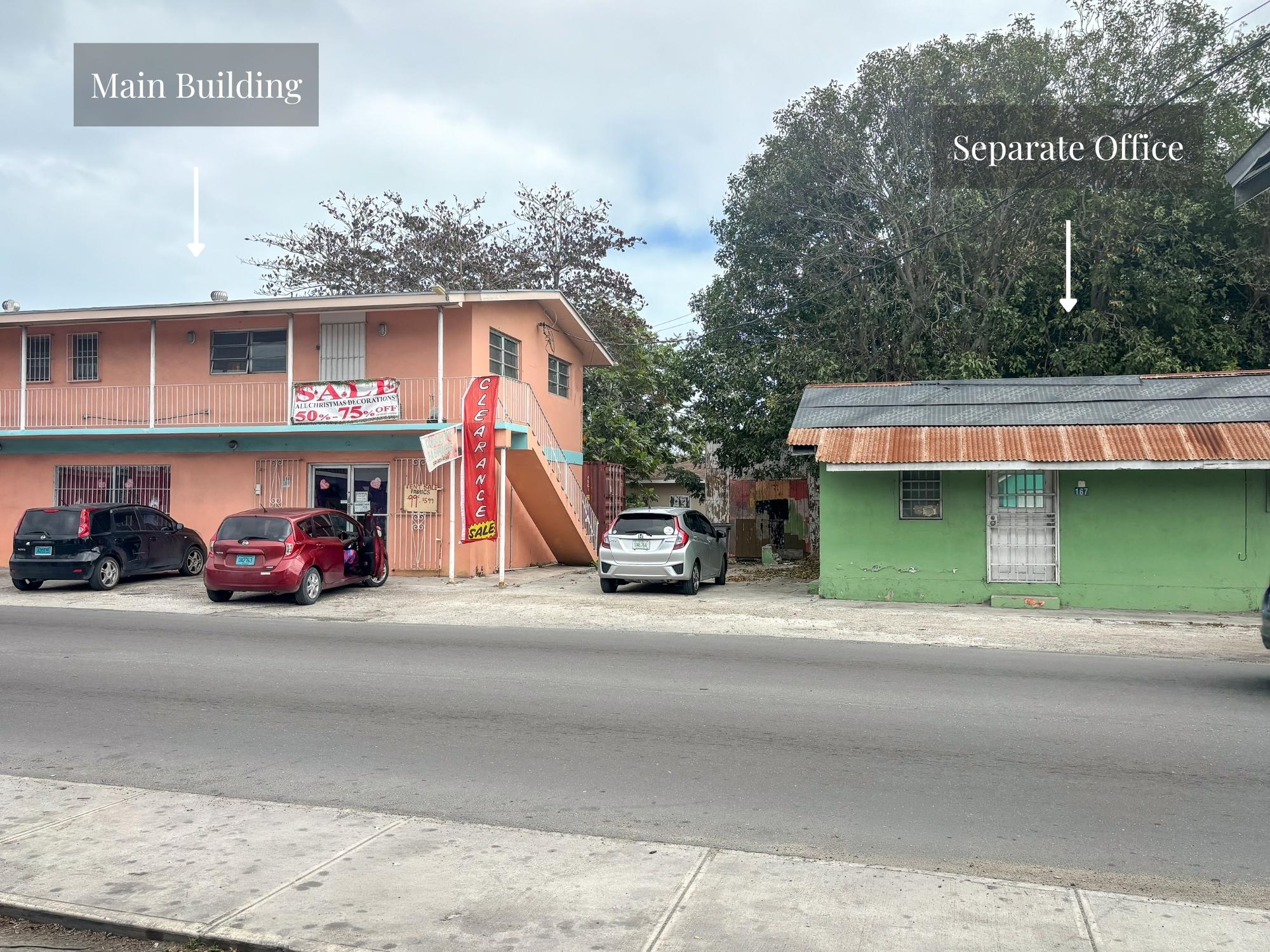 Commercial property located in Mount Royal Avenue, Nassau. The site comprises approximately 3,054sf main two-story building plus an additional office space measuring approximately 783 sq. ft. Suitable for retail, office or redevelopment opportunities. Easy access to main roads and surrounding commercial areas.