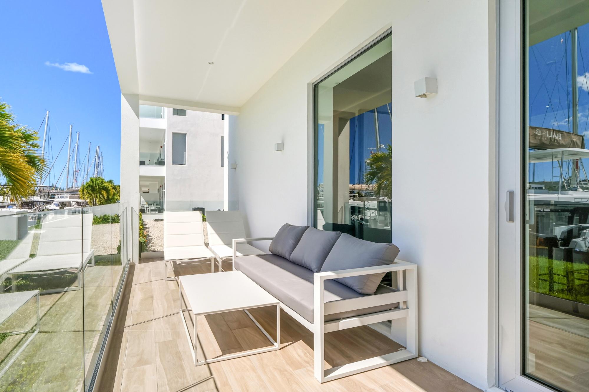 Enjoy the ultimate island lifestyle in this ground-floor end unit at One Marina, Palm Cay. Perfectly positioned for privacy and convenience, Unit 204 offers seamless indoor-outdoor living with direct marina access and resort-style amenities just steps away. Beautifully furnished and fully turnkey, this residence is move-in ready. The open-plan kitchen, living, and dining area showcases marina views through floor-to-ceiling windows leading to a spacious patio â ideal for relaxing or entertaining. The gourmet kitchen features high-end appliances, while three en suite bedrooms, including a private primary suite, ensure comfort for all. A den with bunk beds expands sleeping capacity to eight. Additional features include a powder room, in-unit laundry, EV charger, and designated parking. Enjoy all Palm Cay offers â a world-class marina, beach club, pools, tennis, fitness center, and dining at The Pink Octopus. Short-term rentals allowed â the perfect blend of luxury, lifestyle, and investment potential.