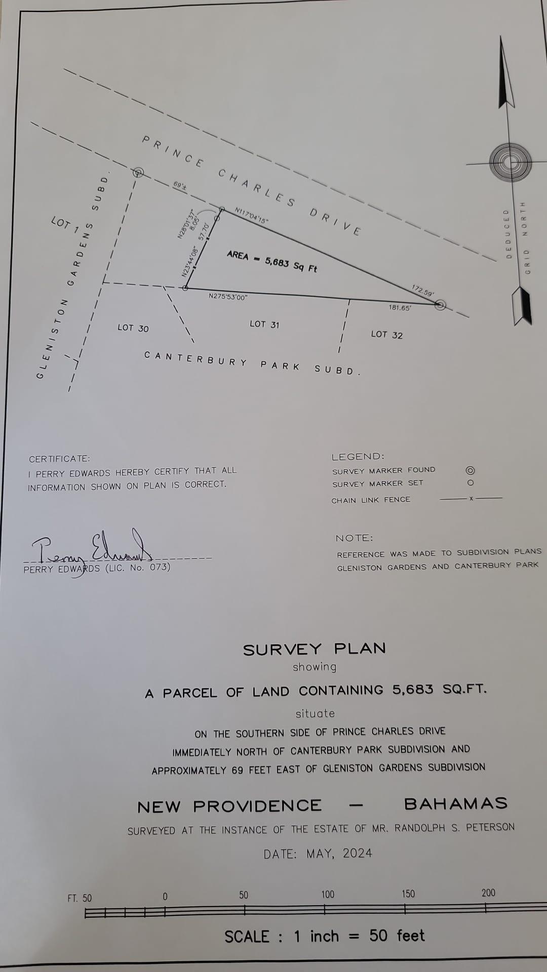 - Legal Description: A 5683 square foot commercial lot on Prince Charles Dr, Nassau Bahamas