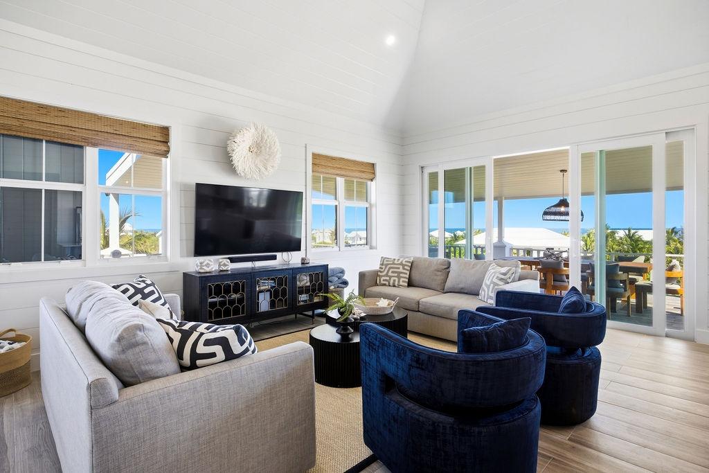 A thoughtfully constructed 4BR/3BA home in the exclusive community of Dorros Cove sweeping ocean views. Built in 2024 by the owner, who is a custom home builder out of North Carolina. Royal Palms offers 1,900 sq ft of open-concept living with designer furnishings, high-end finishes, and a comfortable layout ideal for entertaining. Expansive loggia with IPE decking provides the perfect outdoor living room to enjoy ocean breezes and panoramic views. Additional lower-level space includes a full laundry and garage. Located a short walk from Tahiti Beach and the Dorros Cove Community Dock, and a short golf cart ride to Hope Town village & nearby amenities. A proven income-producing property with strong rental history, Royal Palms is a turnkey investment or perfect island retreat.