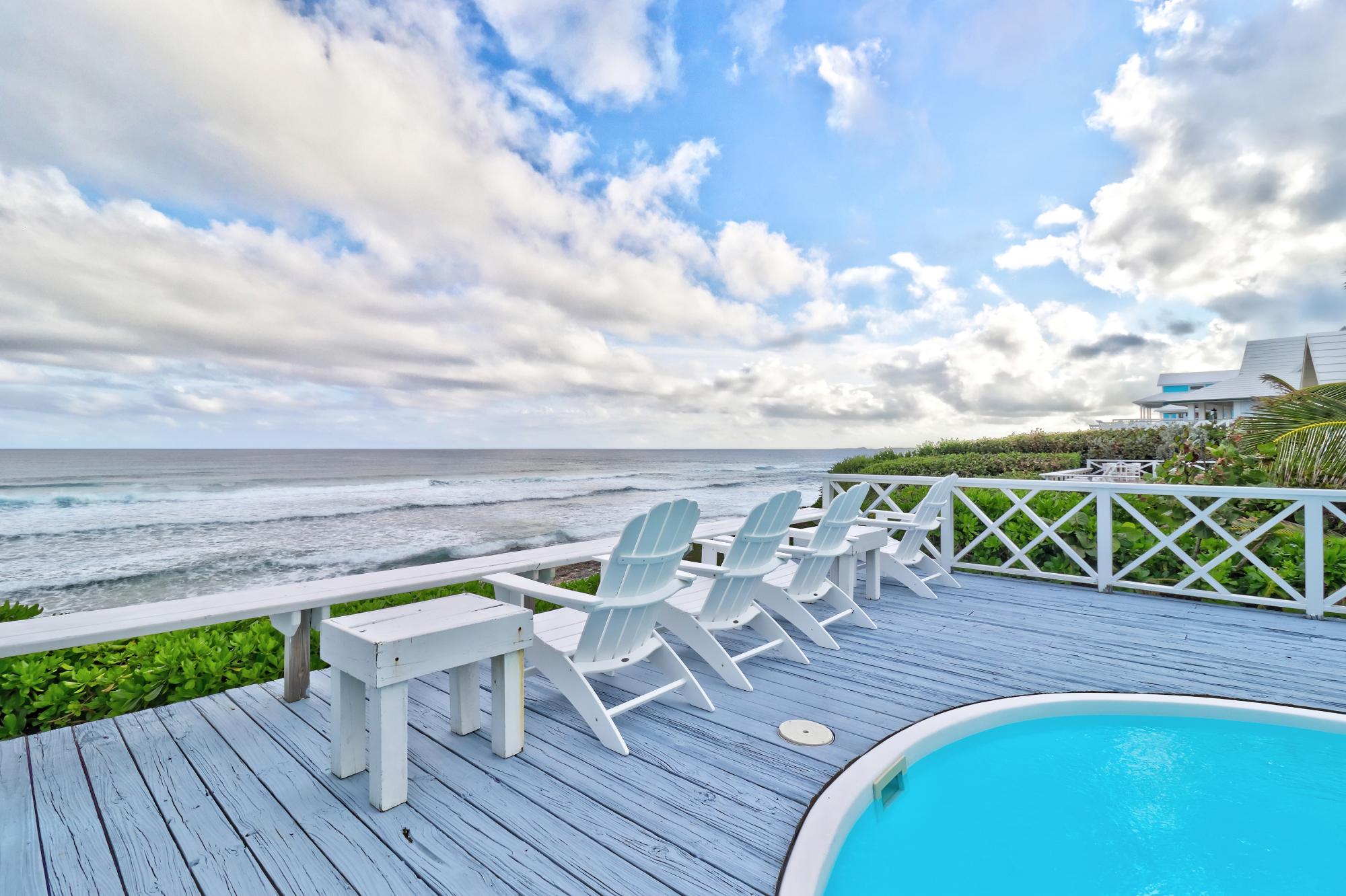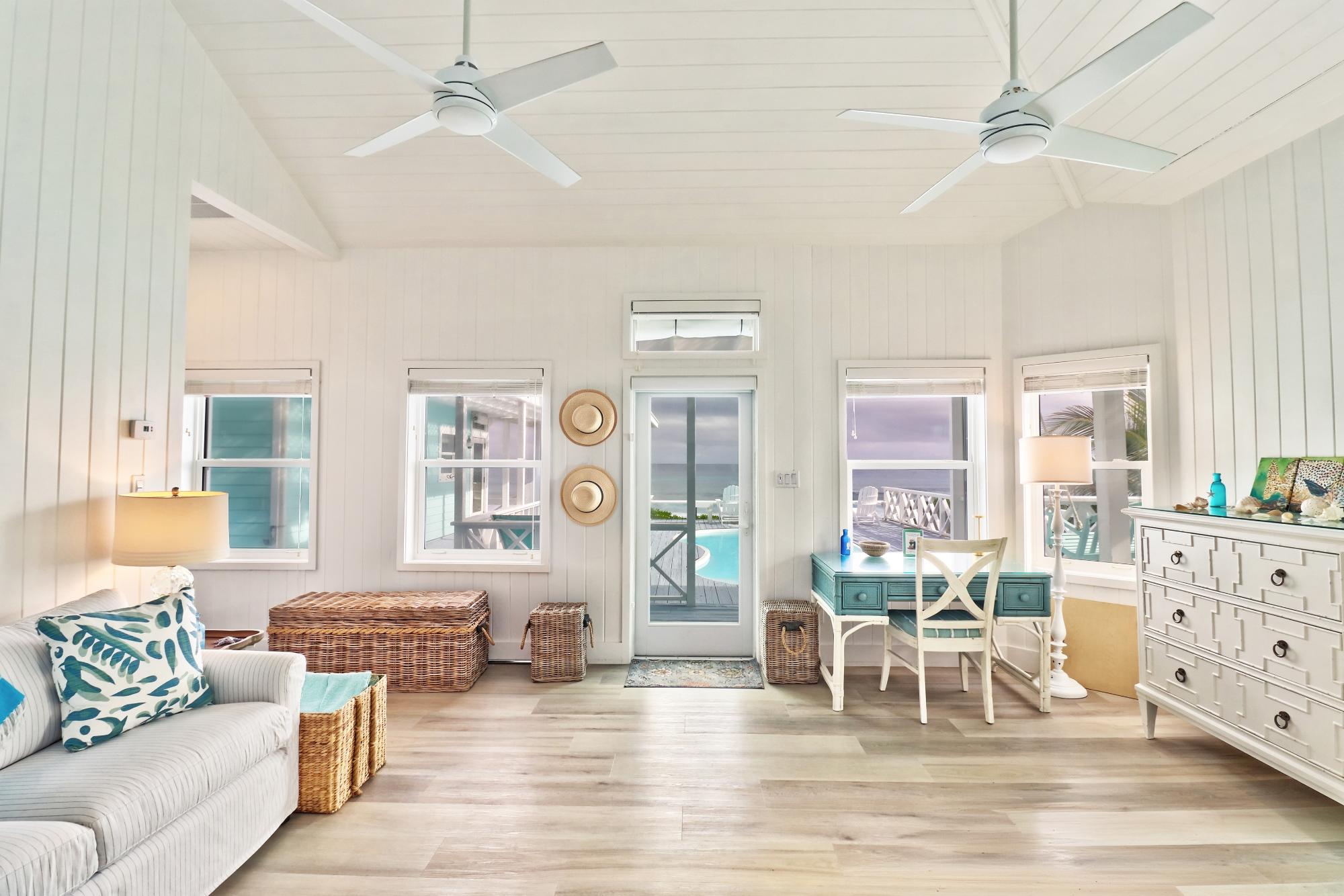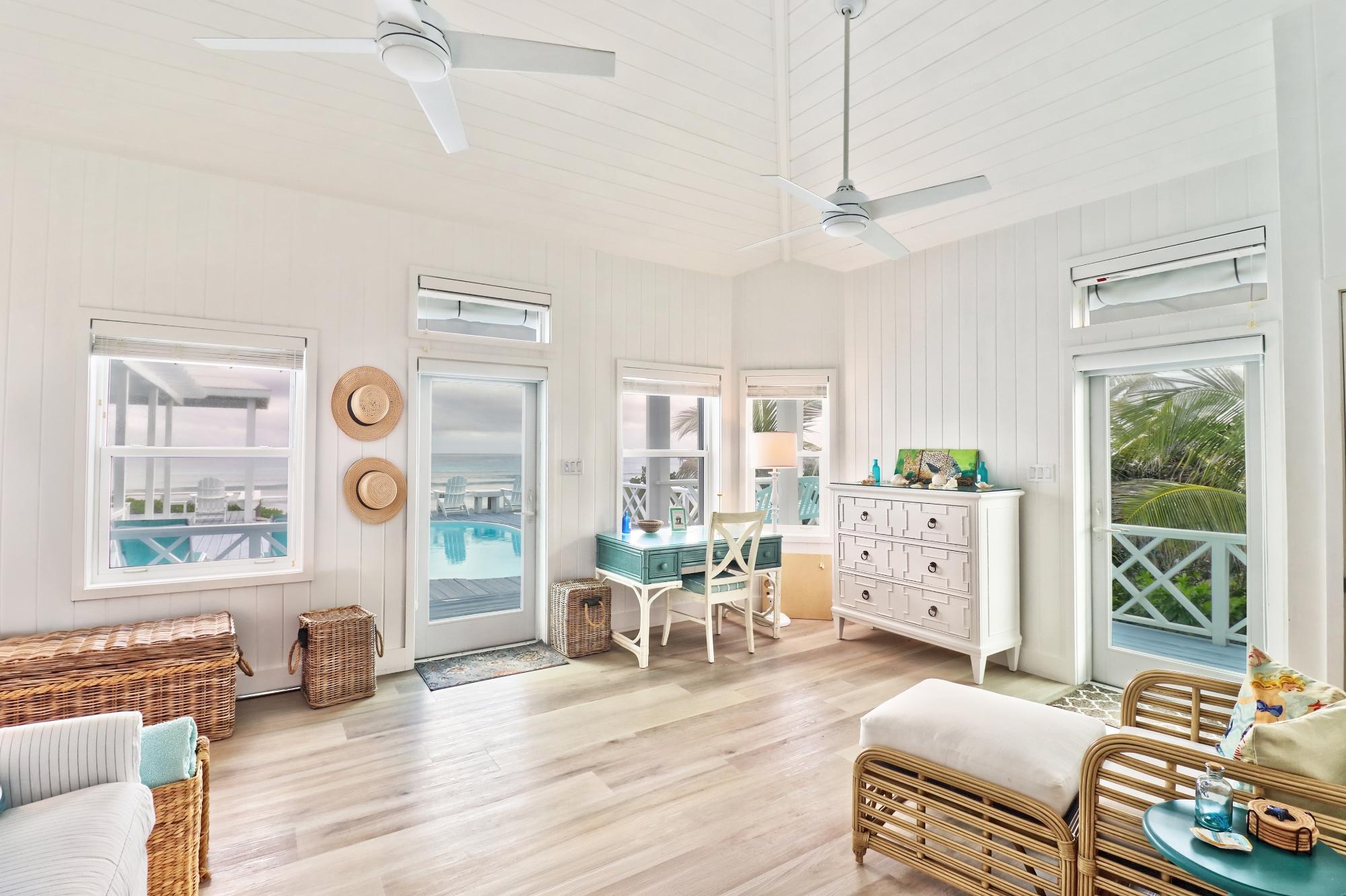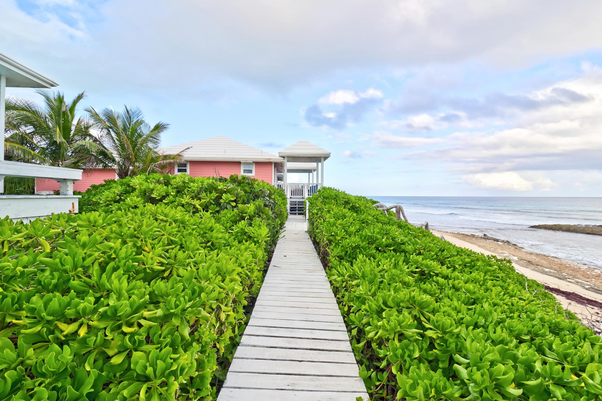BEACH HOUSE WITH DOCK SLIP. Enjoy spectacular, head-on Atlantic Ocean views from this 3-bedroom, 4-bath pod-style beach cottage in the exclusive Dorros Cove Community on the southern shore of Elbow Cay, Abaco, Bahamas. Perfectly positioned on 109 feet of elevated oceanfront with direct beach access, the property also includes a private boat slip at the Dorros Cove Dock. All interiors have undergone a full renovation by Susan Thompson of Greenleaf Designs. The main pod offers a functional galley kitchen, round-table dining, cozy living area, two guest bedrooms, and two baths, all with a chic island vibe! A separate 576-sq-ft primary suite is connected by covered breezeways and an expansive patio with swimming pool. . It is a retreat of its own with cozy lounge, kitchenette, and laundry room. The ground level (506 sf) provides a two-golf-cart garage, additional laundry, bathroom, and ample storage. Additional features include a backup generator and beach steps. Walking distance to Tahiti Beach and a 15-minute golf-cart ride to historic Hope Town.