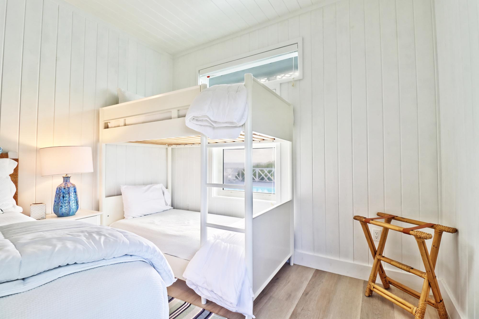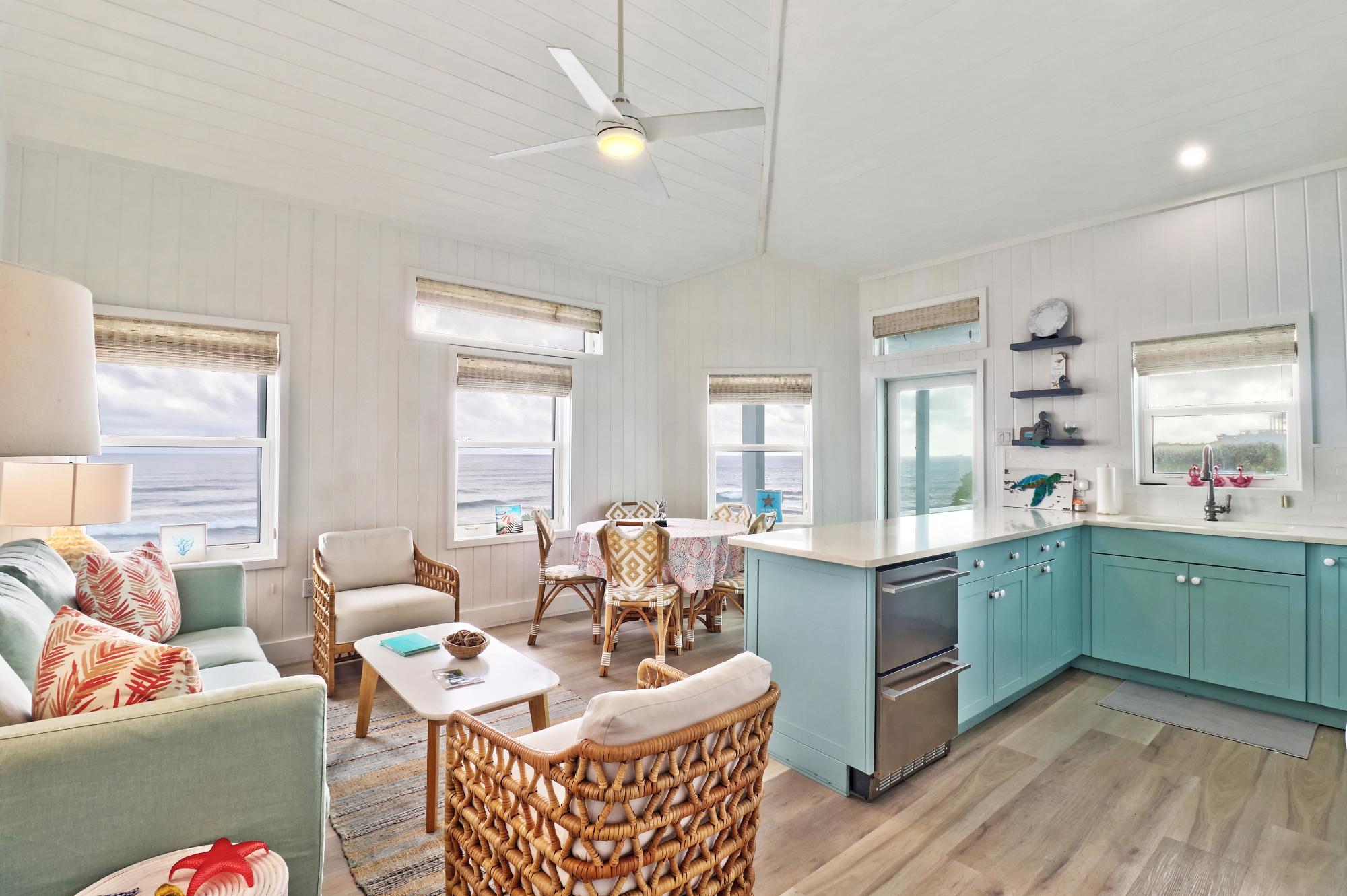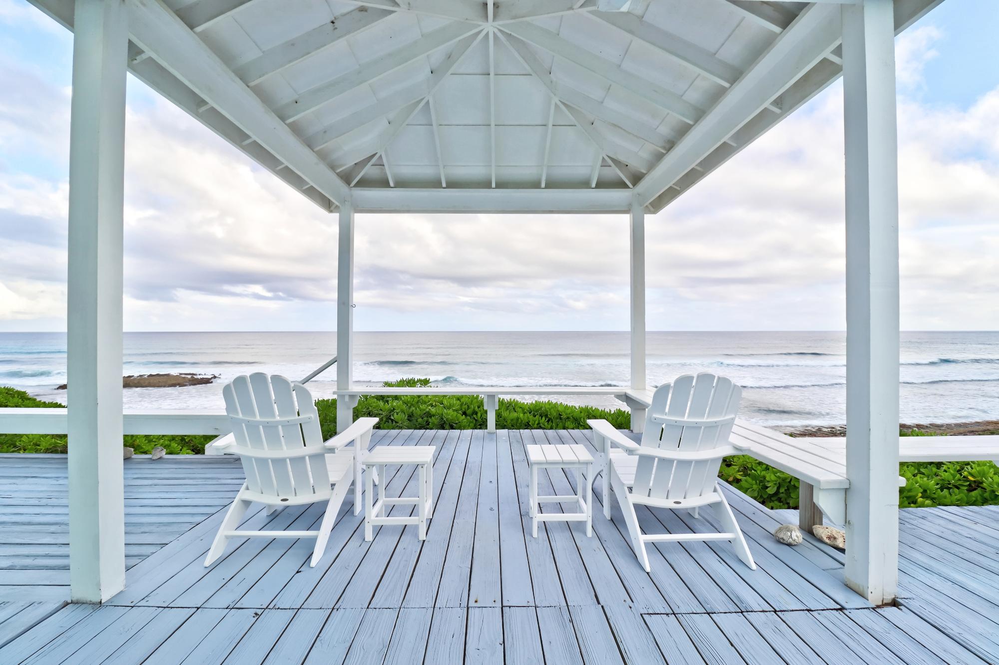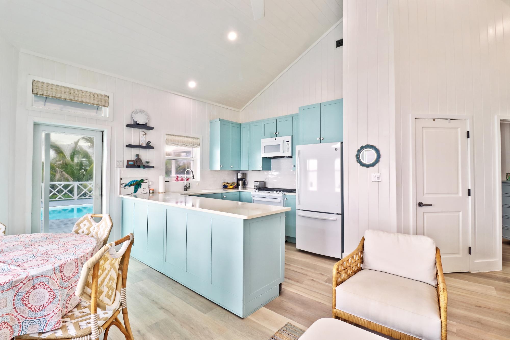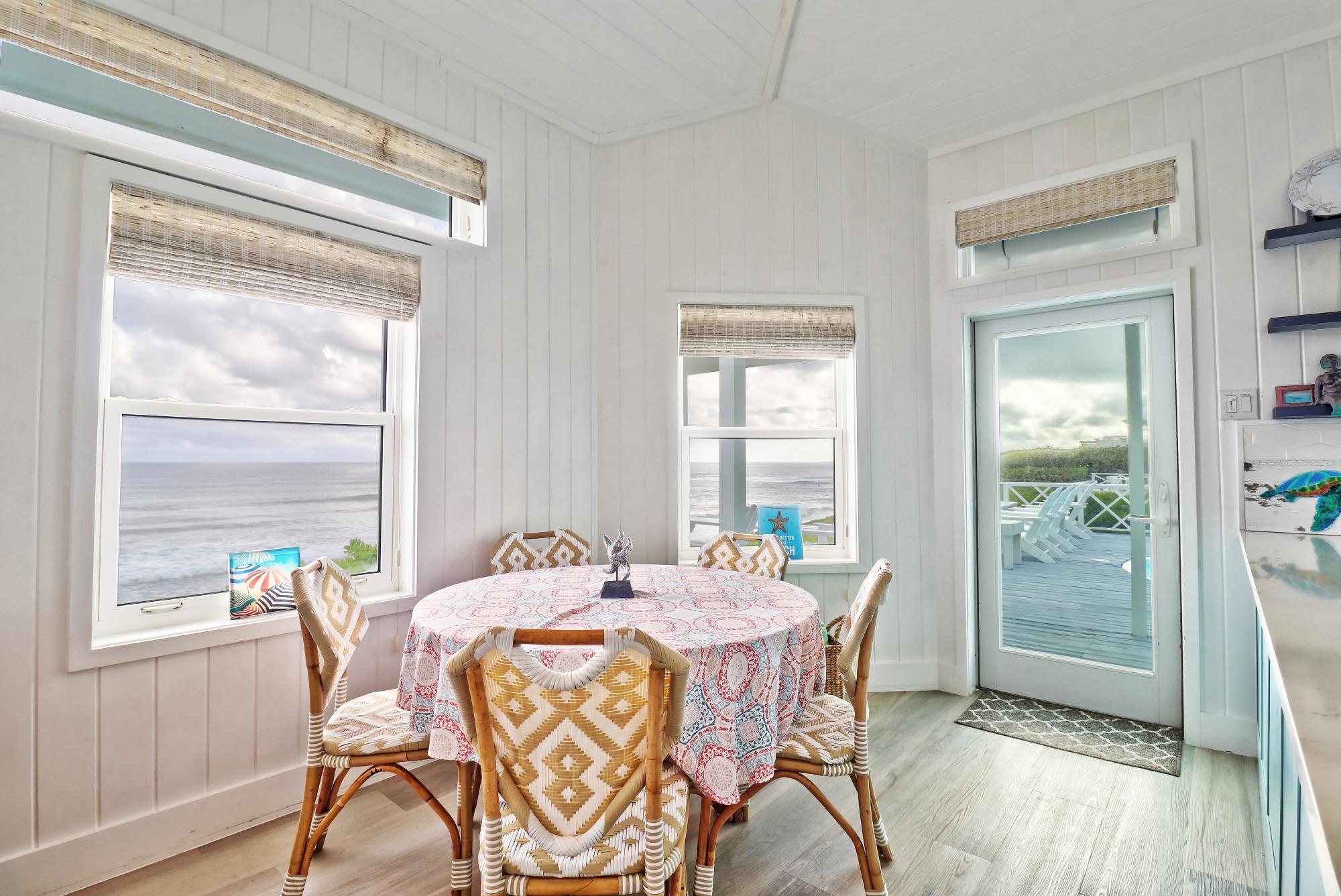 BEACH HOUSE WITH DOCK SLIP. Enjoy spectacular, head-on Atlantic Ocean views from this 3-bedroom, 4-bath pod-style beach cottage in the exclusive Dorros Cove Community on the southern shore of Elbow Cay, Abaco, Bahamas. Perfectly positioned on 109 feet of elevated oceanfront with direct beach access, the property also includes a private boat slip at the Dorros Cove Dock. All interiors have undergone a full renovation by Susan Thompson of Greenleaf Designs. The main pod offers a functional galley kitchen, round-table dining, cozy living area, two guest bedrooms, and two baths, all with a chic island vibe! A separate 576-sq-ft primary suite is connected by covered breezeways and an expansive patio with swimming pool. . It is a retreat of its own with cozy lounge, kitchenette, and laundry room. The ground level (506 sf) provides a two-golf-cart garage, additional laundry, bathroom, and ample storage. Additional features include a backup generator and beach steps. Walking distance to Tahiti Beach and a 15-minute golf-cart ride to historic Hope Town.