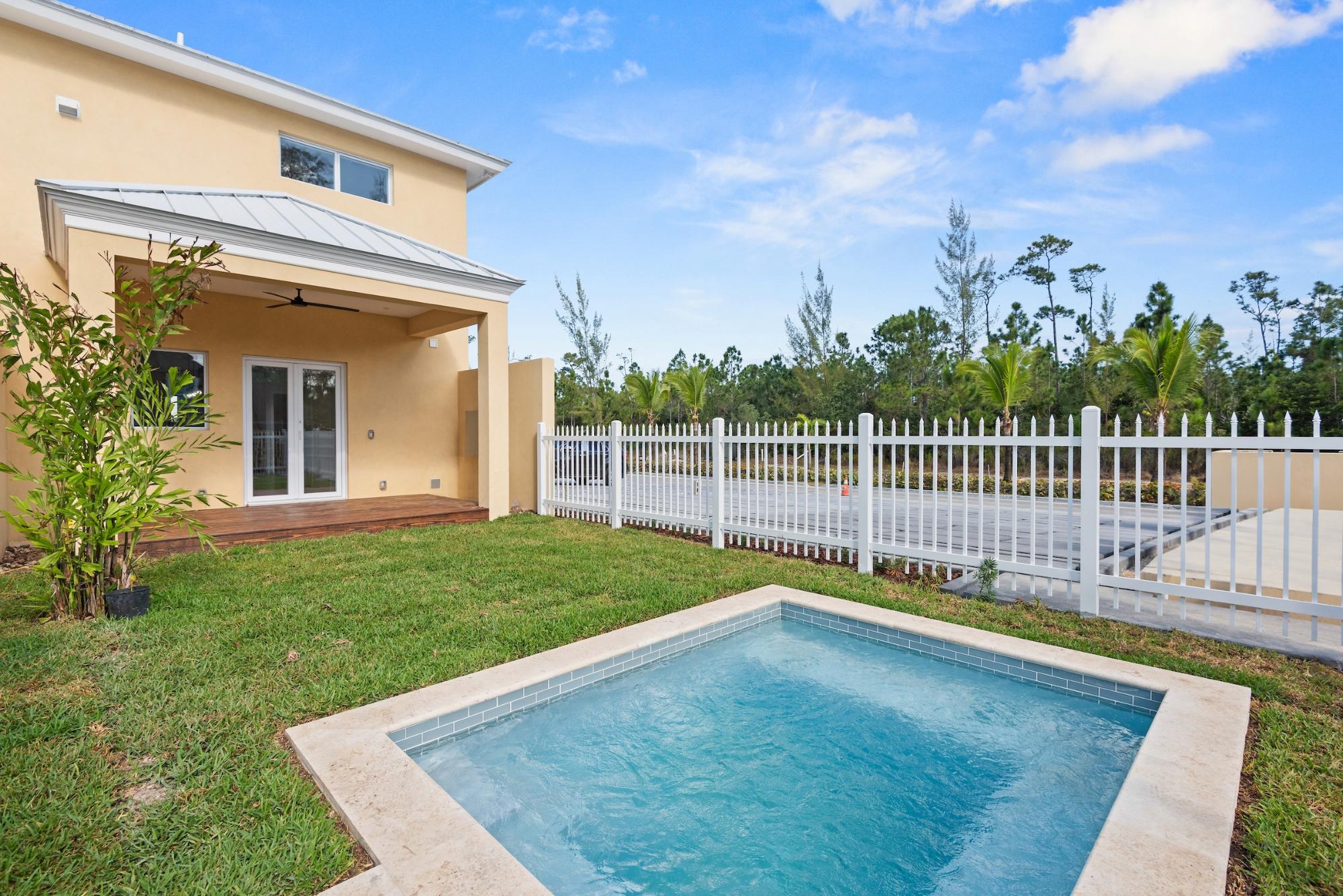 Brand new and beautifully designed, this 2-bedroom, 2.5-bath townhome in the gated community of South Ocean Estates offers modern island living in a private, secure setting. Spanning approximately 1,800 sq. ft. across two levels, the residence features bright open living spaces, contemporary finishes, and a seamless indoor-outdoor flow ideal for relaxed coastal living. The main floor includes a spacious living and dining area that opens to a private terrace with plunge pool, creating the perfect spot to unwind or entertain. Upstairs, both bedrooms offer generous proportions and ensuite bathrooms, providing comfort and privacy for residents and guests alike. The townhome is available furnished or unfurnished, allowing tenants flexibility to tailor the space to their lifestyle. Please note: the first photo shown is of a similar unit and is intended to illustrate the style and quality of furnishings tenants can expect. Residents of South Ocean Estates enjoy the peace of a secure gated community while remaining conveniently located near Nassauâs best beaches, shopping, and dining.