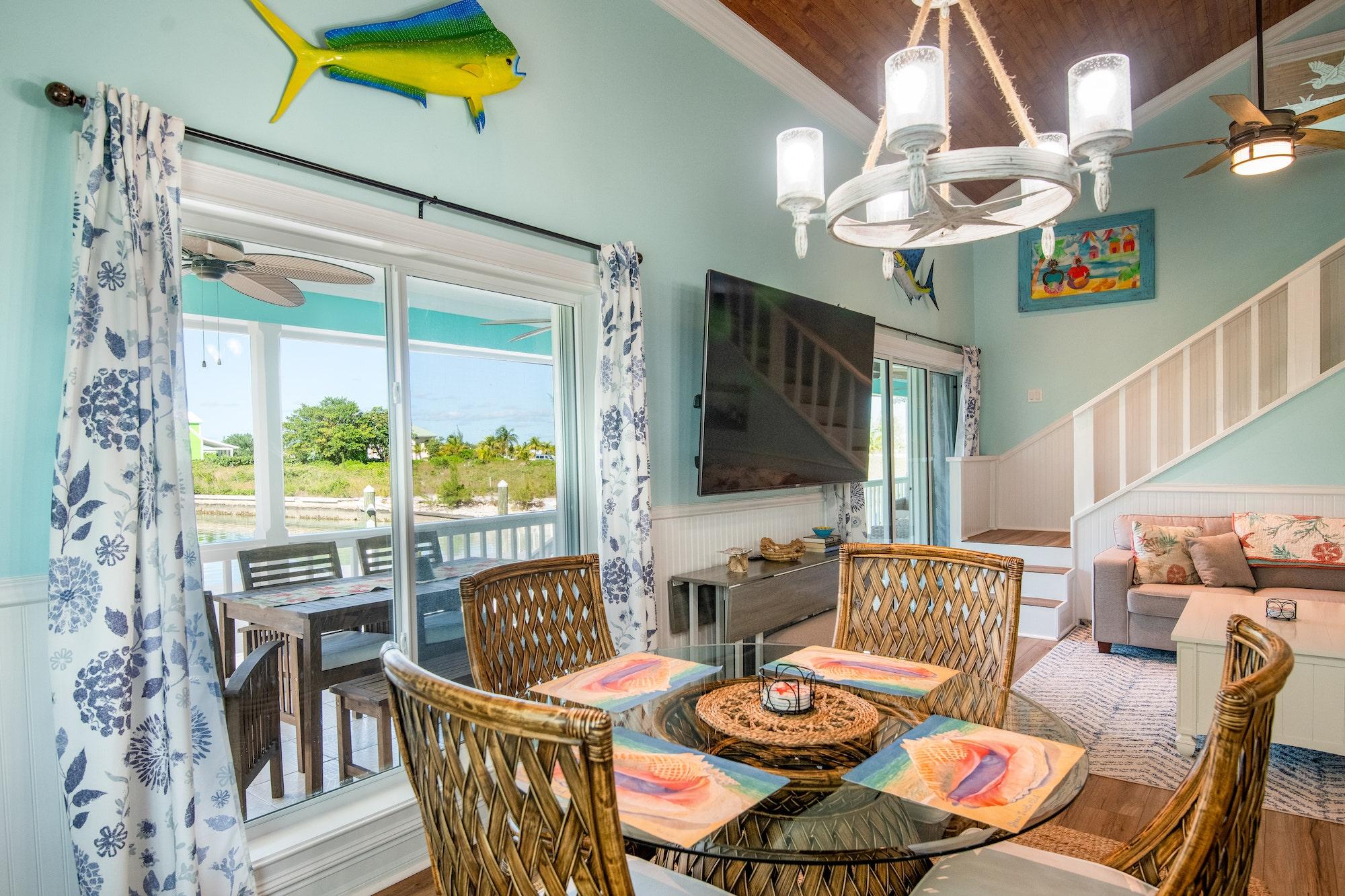 Sunset Paradise is an immaculate 4-bedroom, 4-bathroom island-style home located at the end of a peaceful private canal in Treasure Cay. Built in 2015 and fully refurbished in 2022, this beautifully furnished residence combines classic Bahamian charm with modern comfort. The open concept living, dining, and kitchen areas feature vaulted ceilings and westerly views across the calm canal, offering some of the most stunning sunsets in the Abacos. Outdoor living includes a spacious covered porch, an expansive patio, and a 20,829 sq. ft. landscaped yard enclosed by a wood picket fence. Boaters will enjoy a 50-foot private dock, while a detached storage shed, 18KW backup generator, and dual driveways add convenience. Just a short golf cart ride from Windward Beach and the world-famous Treasure Cay crescent beach, Sunset Paradise offers a perfect blend of tranquility, accessibility, and relaxed island luxury.