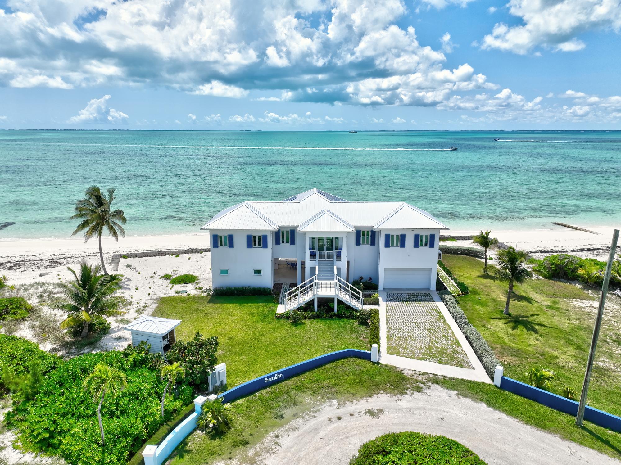 Nestled on the powder white sands of Windward Beach in world famous Treasure Cay, Suzie's Rock is an exquisite two storey three bedroom, three and a half bathroom luxury beachfront residence boasting breathtaking beach and shimmering Sea of Abaco views! The second level functions as the main living area, with a tastefully furnished and well equipped open living/dining/kitchen, with three bedrooms and three full bathrooms. The covered veranda stretches the whole waterfront side of the home providing outdoor living at its best! The lower level has additional outdoor living space, a half bathroom, storage, and other rooms housing key integrated design features such as solar and water systems. A backup generator and large water storage tank are also included on the property. This amazing home is situated on two beachfront lots with a combined beach frontage of 285 feet. Shopping and dining options are a short golf cart ride away, and other amenities available via car ride to Marsh Harbour. This home with its stunning vistas, privacy, and off grid features is truly one of a kind!