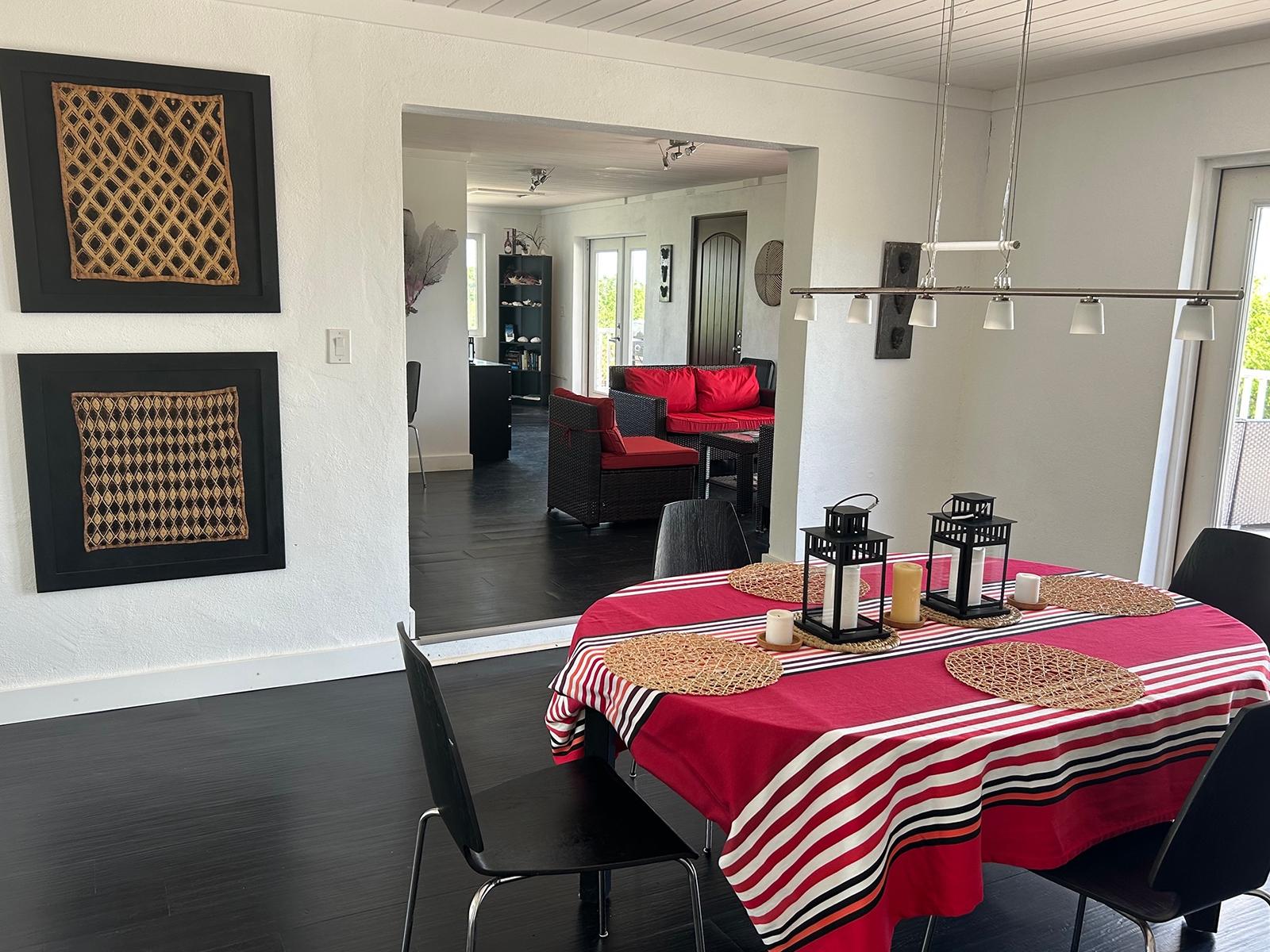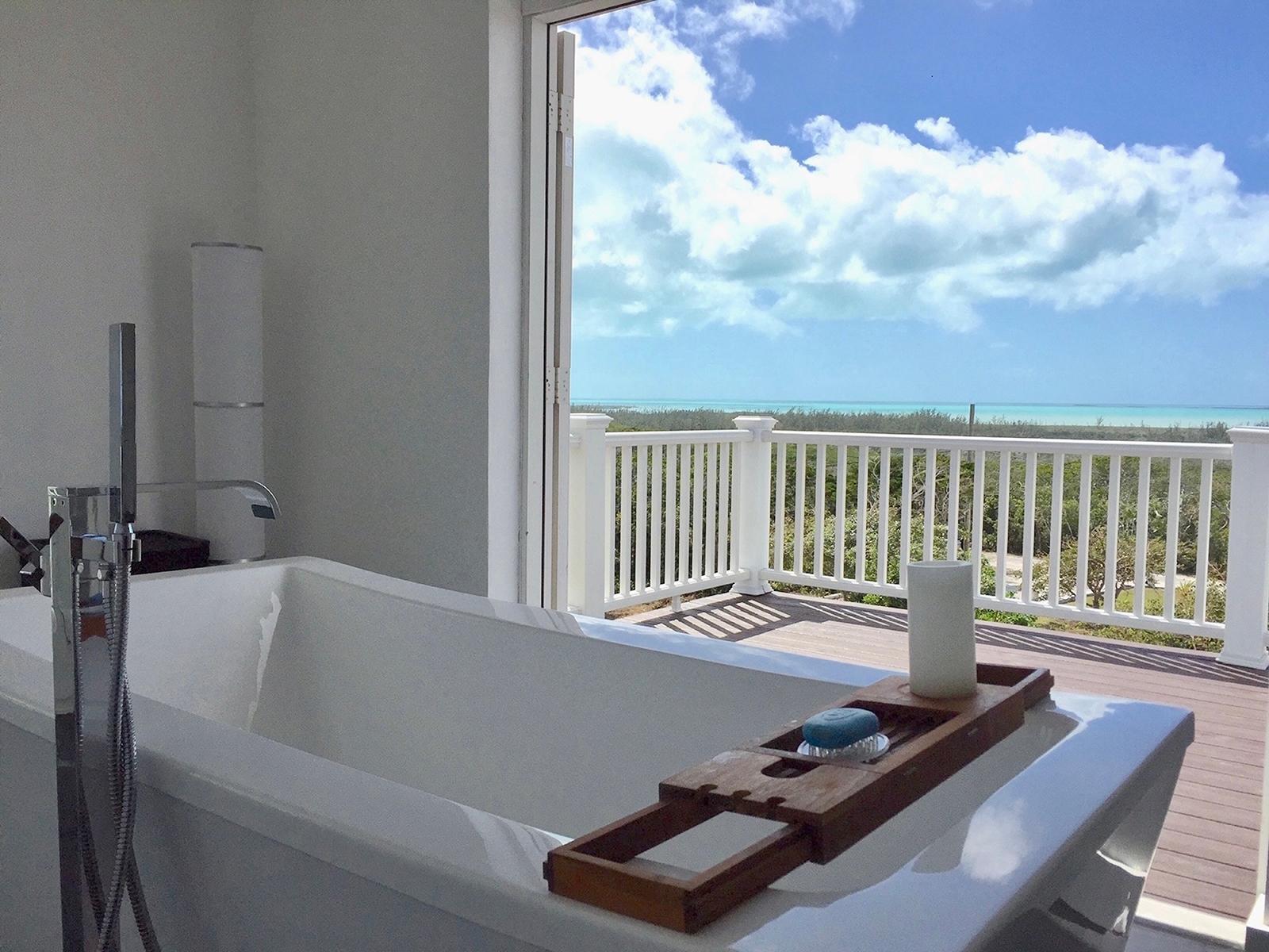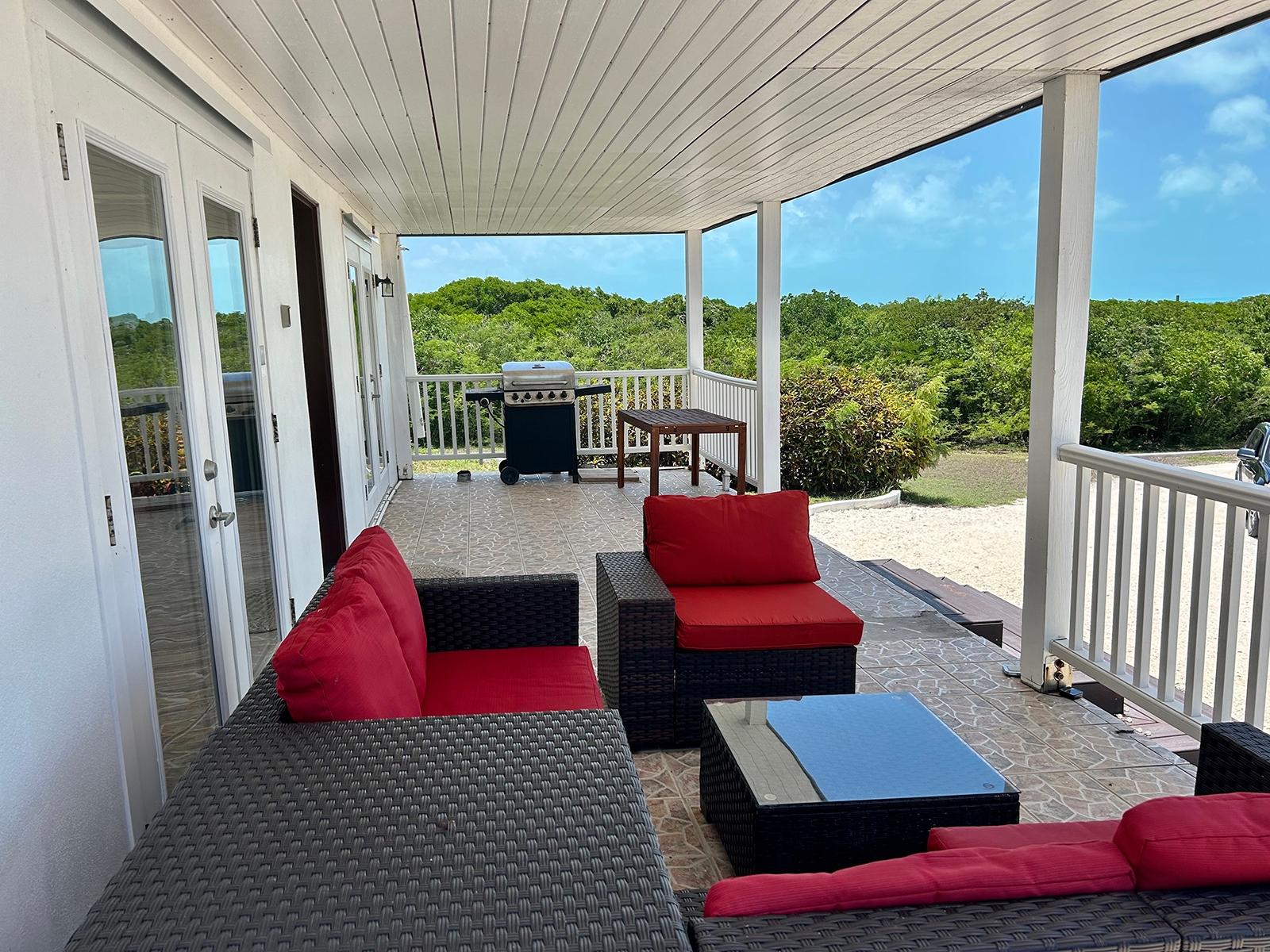 This open floorpan hilltop 2 storey home lies on a landscaped 3/4 acre and features stunning panoramic views over the north of Long Island including both sunrise and sunset (or moonrise & moonset) over water for the majority of the year. This property is turnkey and part of the Stella Maris Resort community minutes walking distance to the main resort restaurant, bars, and pools. Completely gutted in 2014, every element of the rebuild focused on reinforcing the existing cement block construction for maximum strength protection with simpson strong ties, stainless steel 5/8 threaded rods for deck supports, hurricane clips throughout the attic and 3 layers of waterproof paint underneath all flooring with floating vinyl plank flooring allowing for easy access as necessary. All baseboard trim is PVC. All electrical and plumbing systems were replaced. Drains were put in for both of the master bedroom bathtubs and the kitchen was specifically designed to sit off the ground in the event of water. All seating furniture is designed for indoor/outdoor reconfiguration.