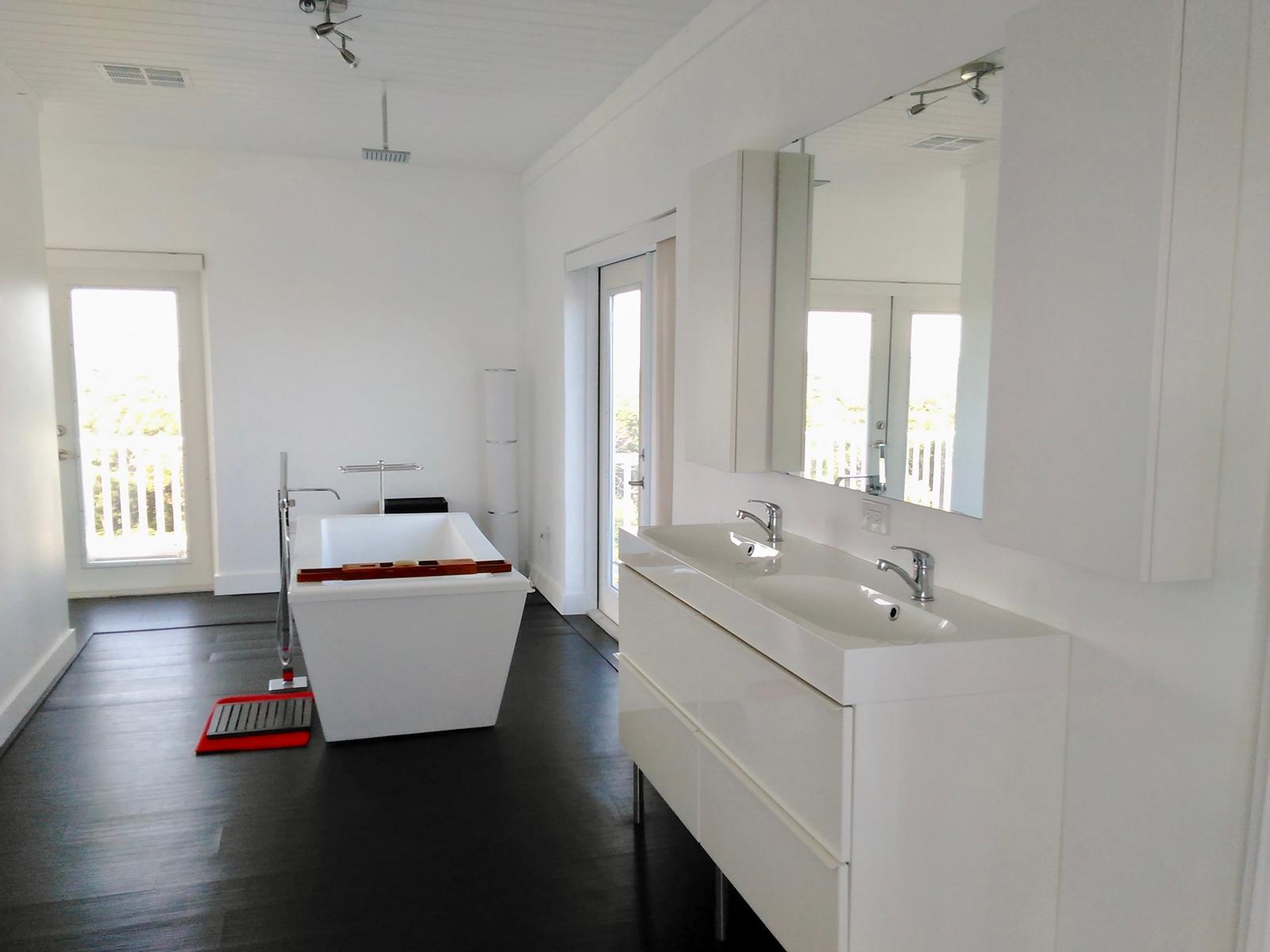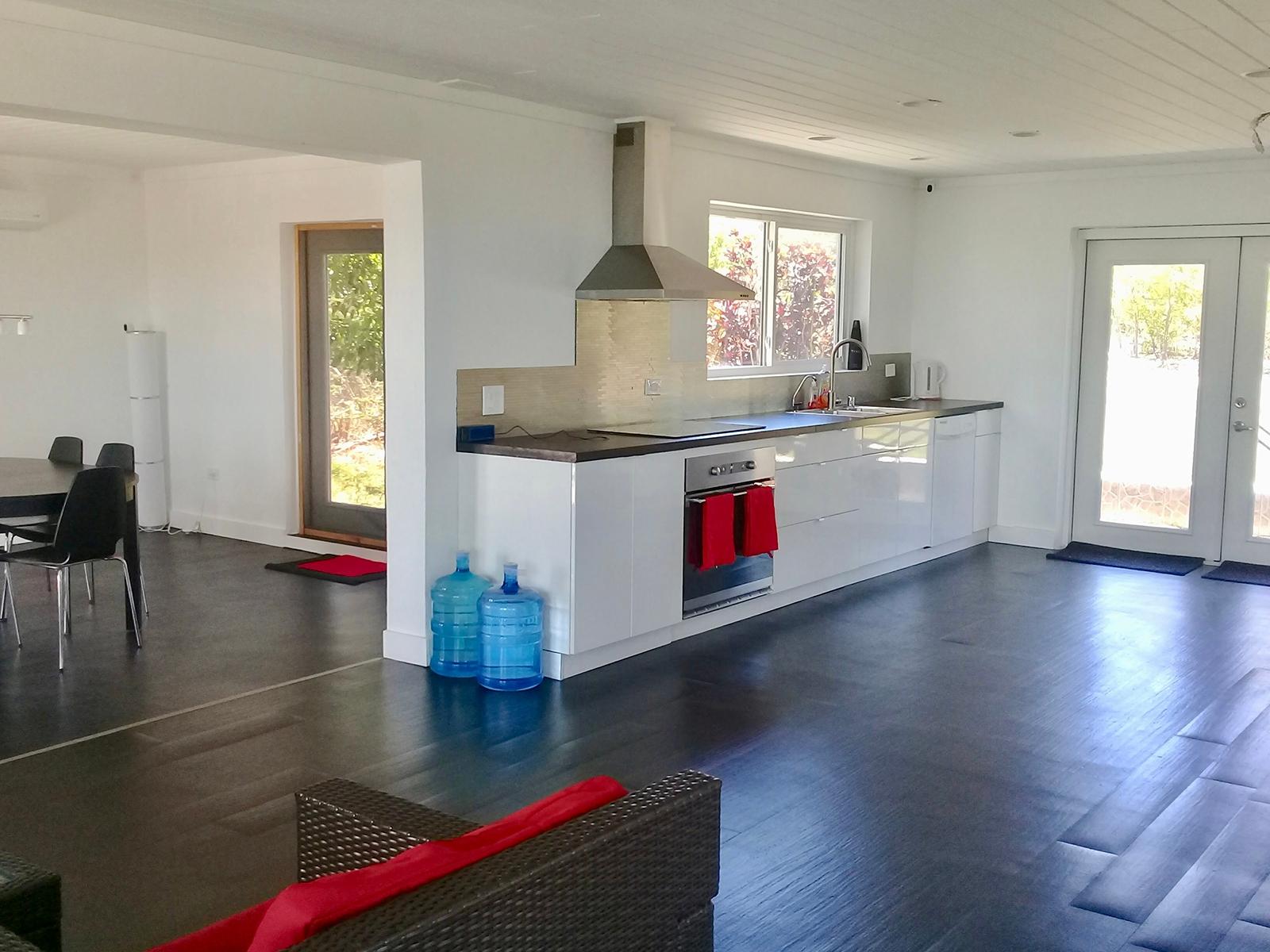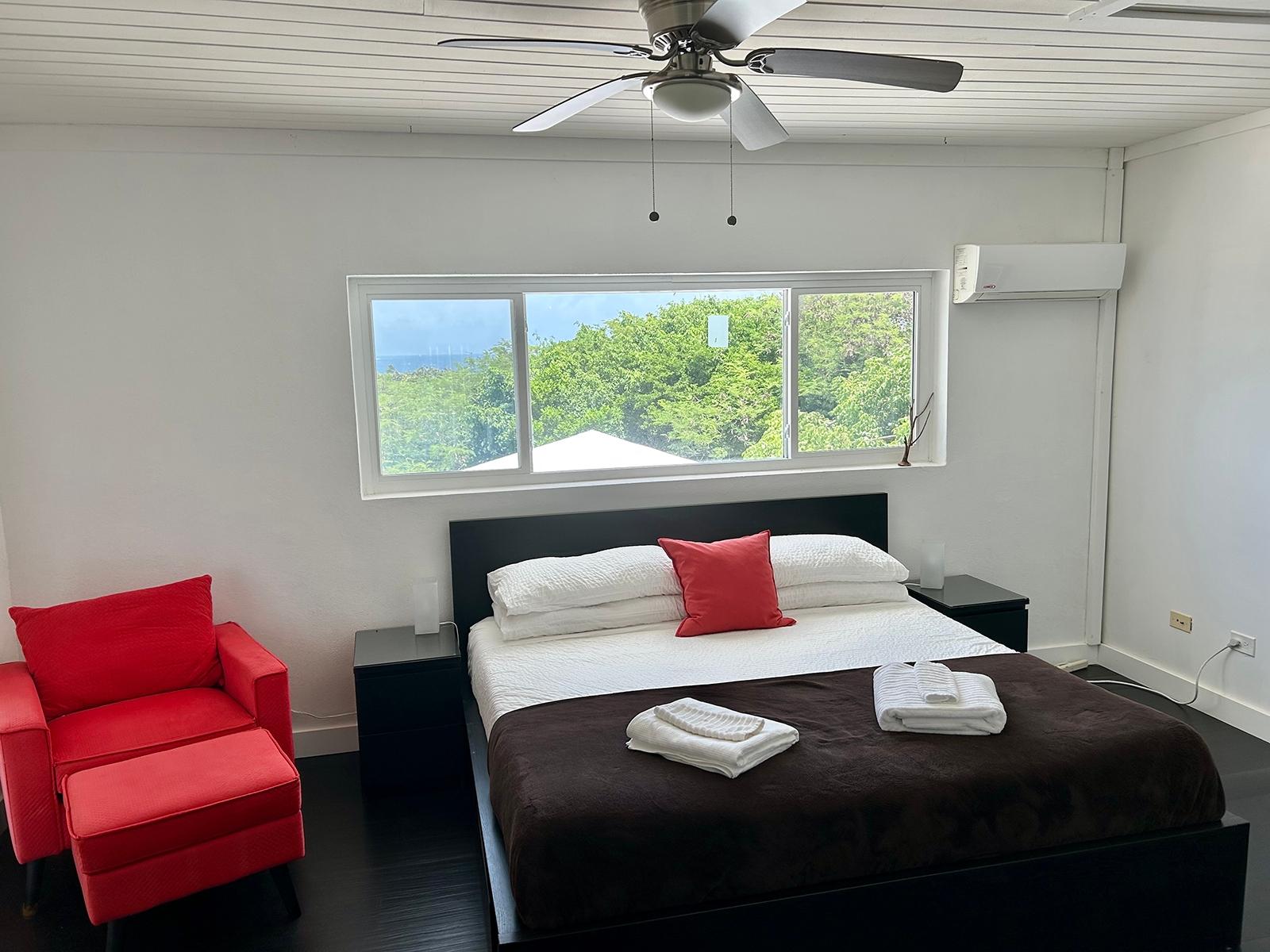 This open floorpan hilltop 2 storey home lies on a landscaped 3/4 acre and features stunning panoramic views over the north of Long Island including both sunrise and sunset (or moonrise & moonset) over water for the majority of the year. This property is turnkey and part of the Stella Maris Resort community minutes walking distance to the main resort restaurant, bars, and pools. Completely gutted in 2014, every element of the rebuild focused on reinforcing the existing cement block construction for maximum strength protection with simpson strong ties, stainless steel 5/8 threaded rods for deck supports, hurricane clips throughout the attic and 3 layers of waterproof paint underneath all flooring with floating vinyl plank flooring allowing for easy access as necessary. All baseboard trim is PVC. All electrical and plumbing systems were replaced. Drains were put in for both of the master bedroom bathtubs and the kitchen was specifically designed to sit off the ground in the event of water. All seating furniture is designed for indoor/outdoor reconfiguration.