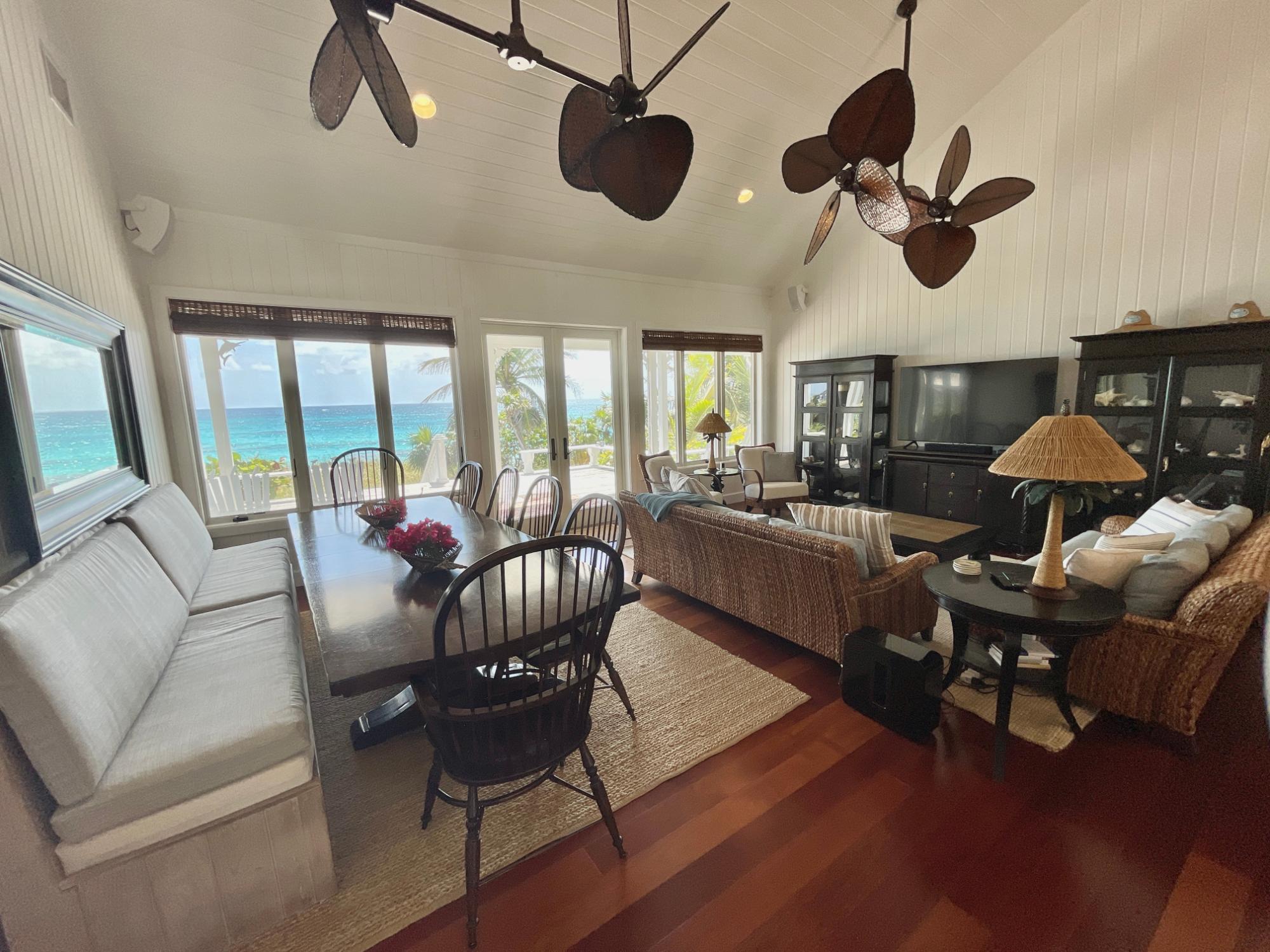 TipOWin is a one-of-kind property sitting directly on a beautiful sandy beach overlooking the Atlantic Ocean, with amazing views of the ocean. This 1.07 acre estate has a main house, bunk cottage, honeymoon cottage and also a hilltop home with views of the Atlantic, Sea of Abaco and even the Hope Town Lighthouse. With a total of 7 bedrooms, 8.5 baths & 2 outdoor showers. Decorated and furnished in a relaxed Island style with wood floors, soaring ceilings, lots of covered porches with seating and hurricane impact windows and doors allowing an abundance of natural light. Turn key with all the bells and whistles, including a large brick courtyard which houses the garage/workshop and a fitness/game room. There is also separate generator house w/ a 65KW generator, water maker & cisterns w/ 34,500 gallons of capacity. For boaters & fisherman there is dockage to accommodate 3 boats up to max 50 ft., one with a 40,000lb boat lift, all featuring 30/50 AMP power and fresh water. Located on North End just a short walk, bike, cart, or boat ride to the historic village with shops & restaurants.