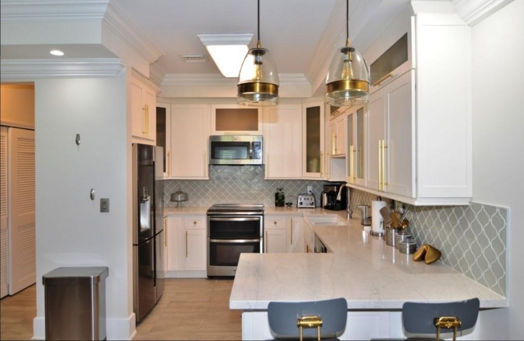 Luxury 3 Bedroom Condo in Venetian West. Professionally decorated and fully furnished, this stunning condo offers resort-style living at its best. The modern kitchen features stainless steel appliances, quartz and marble countertops and all cookware essentials. The open living and dining area flows to a furnished patio overlooking landscaped grounds. The primary suite includes a California King bed, walk-in closet and en-suite bath. The additional bedrooms feature a queen and two twin beds, each with TVs and plush carpeting. Additional highlights: tile floors, impact windows and doors, central A/C, washer & dryer, Char-Broil gas grill and two parking spaces. Community amenities: 24-hour gated security, clubhouse, gym, lap pool, basketball and tennis courts.