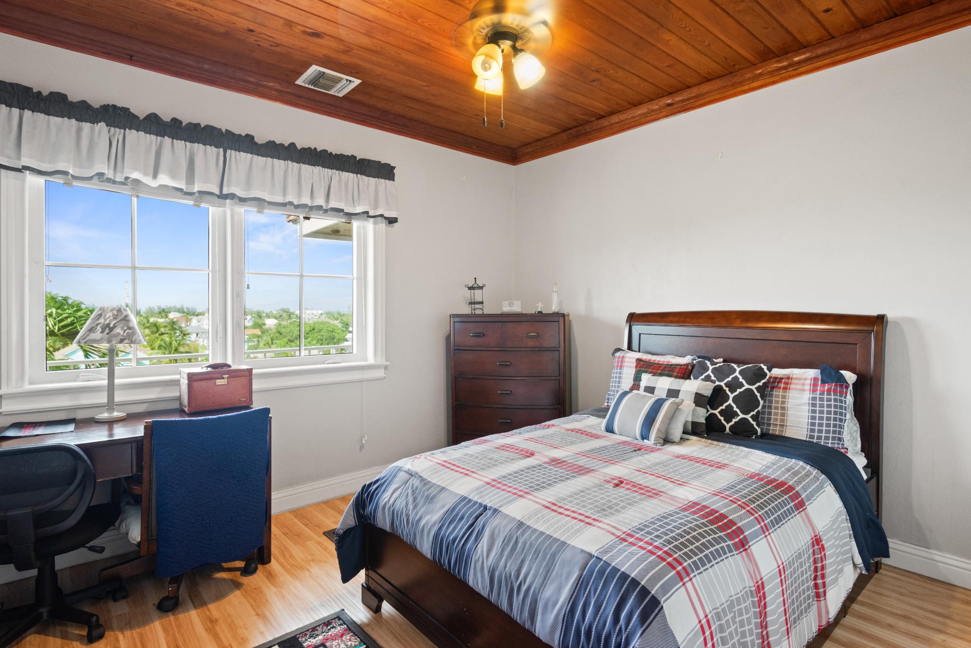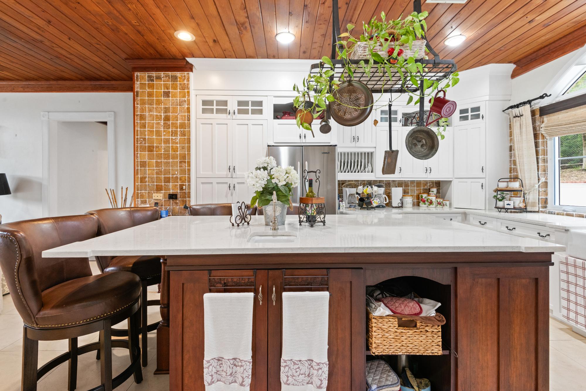 Beautiful and well maintained home located in the sought after community of Westridge estates spans over 43,000 square feet. It is fully enclosed and landscaped beautifully with lots of mature fruit trees and indigenous plants. The home features four generous sized bedrooms and three and a half bathrooms with lots of closet and cupboard space. On the first floor is the living, dining, kitchen and snug areas all beautifully furnished. The kitchen has stainless steel appliances, granite countertops and maple cabinets. Also on this level is a bedroom with an ensuite bathroom and a spacious laundry room. Up the mahogany staircase to the second floor are three additional bedrooms including the spacious master suite. Amenities of this gorgeous property include a 22 KW Generac generator, 2 car garage, 300 gallon water tank, swimming pool, hurricane impact windows and doors and an automatic gate. The home is being sold furnished.